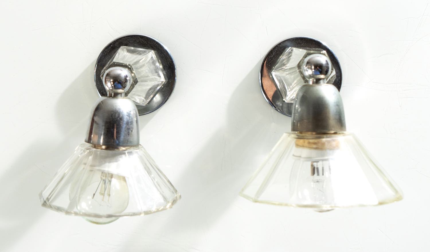 Coppia di applique in vetro trasparente molato, Italia, Anni ‘30.