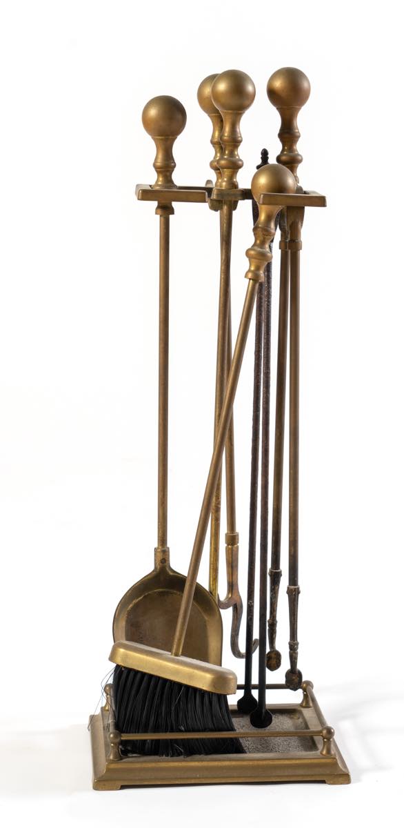 Set da camino in metallo dorato, Italia, XIX secolo.