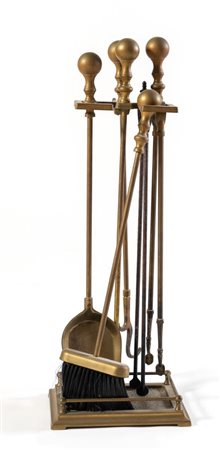 Composto da: paletta, scopa, pinze, attizzatoio, completo di supporto, H cm 68x20x17