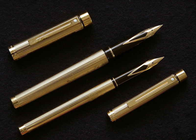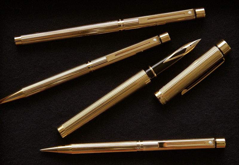 Sheaffer Targa Collection Godron parure - stilografica uomo + stilografica donna + roller + penna a sfera + matita - pennino in oro 14 Kt - laminato oro millerighe