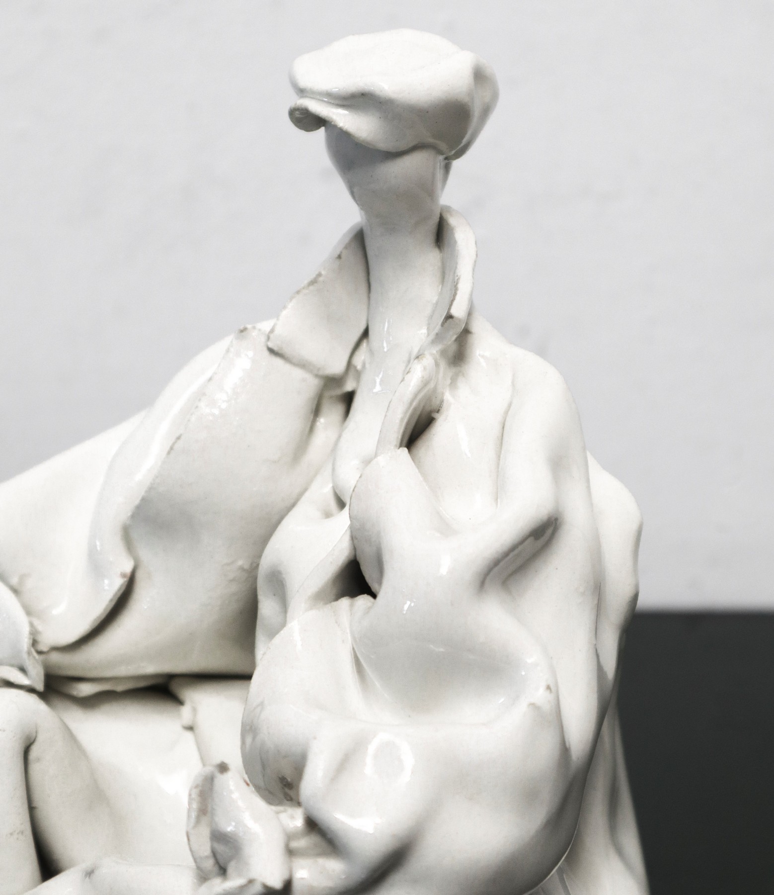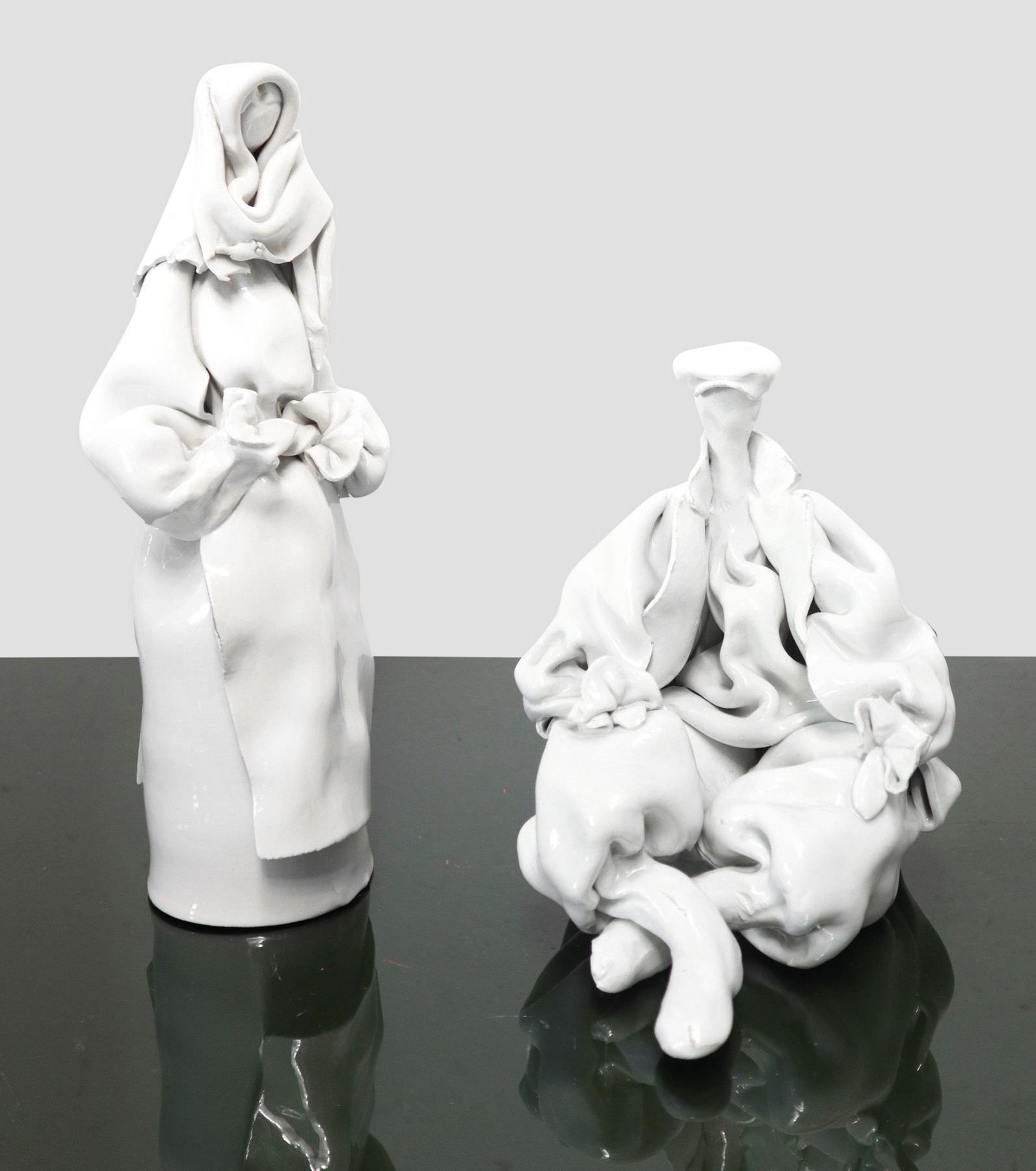 Dolores Demurtas (S.Gavino, Sardegna 1935) - Coppia di figurine in maiolica bianca, raffiguranti personaggi sardi