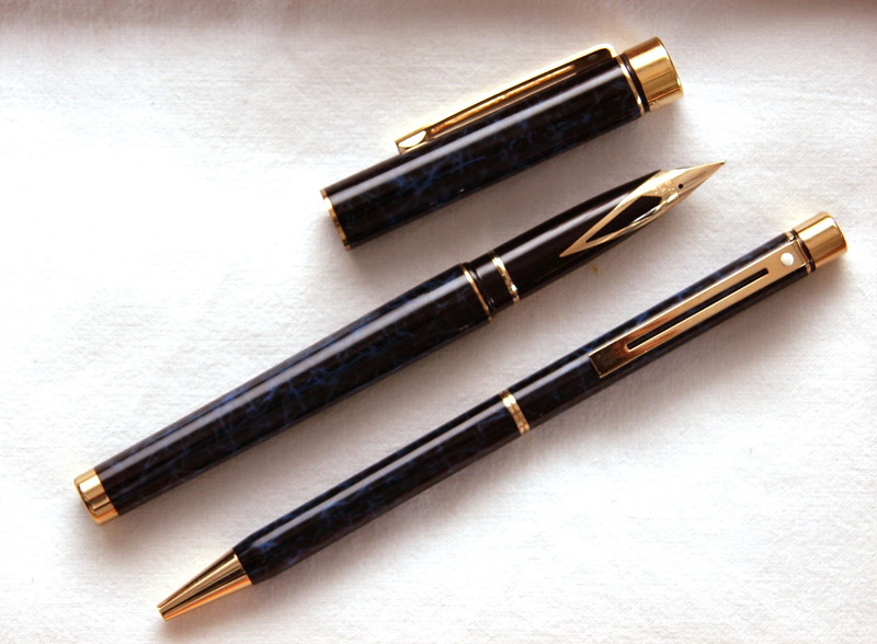 Lotto 100 | Sheaffer The Laque Collection stilografica + penna a sfera - Blue Ronce