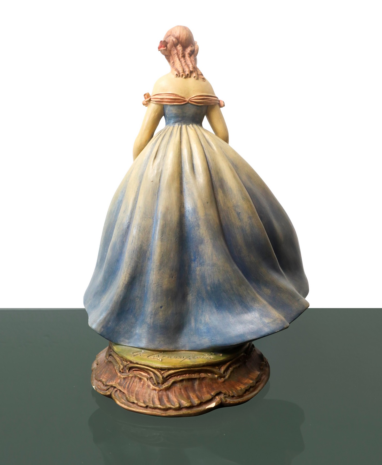 Cacciapuoti - Dama con cesto di fiori, scultura in ceramica policroma, 20° secolo