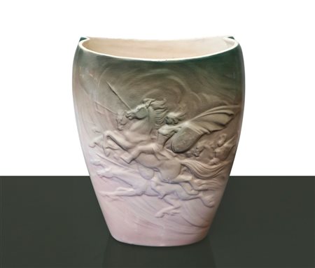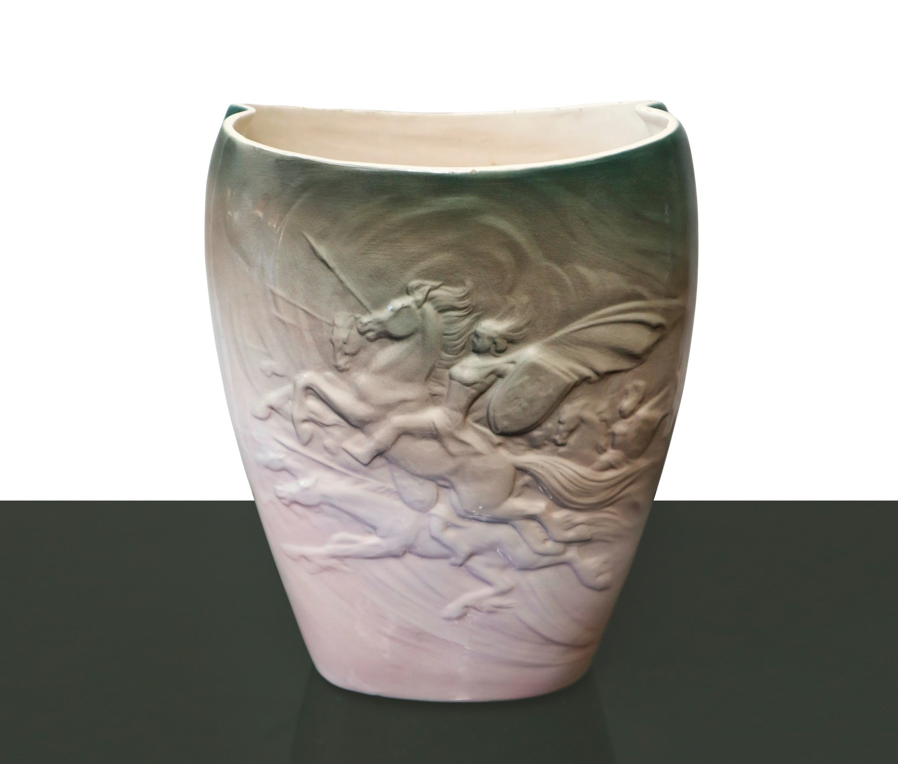 Walter Torino ceramiche (Torino 1910) - Vaso in ceramica con cavalieri, 30s H cm 31 Presenti piccole sbeccature sul bordo superiore e inferiore