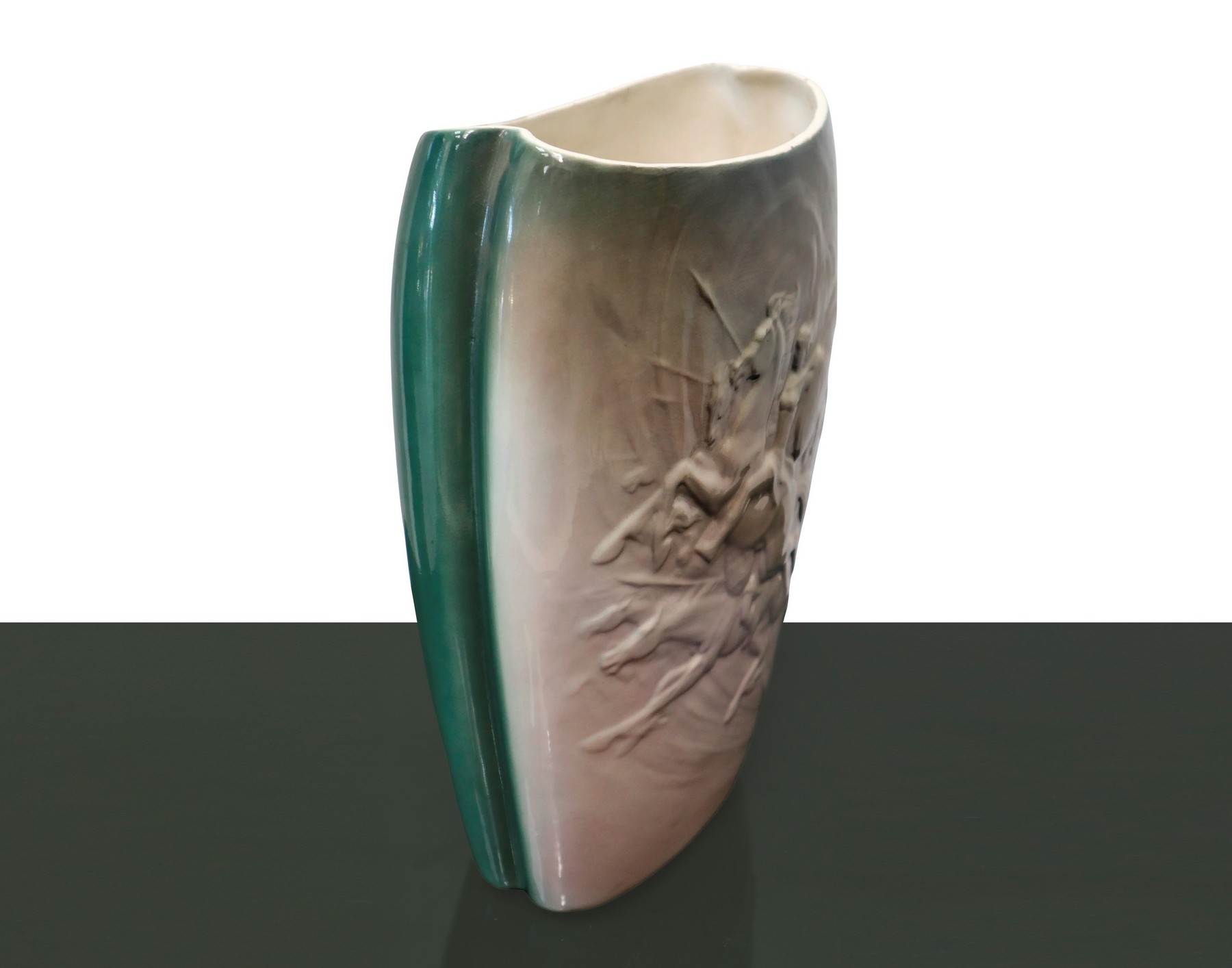 Walter Torino ceramiche (Torino 1910) - Vaso in ceramica con cavalieri, 30s
