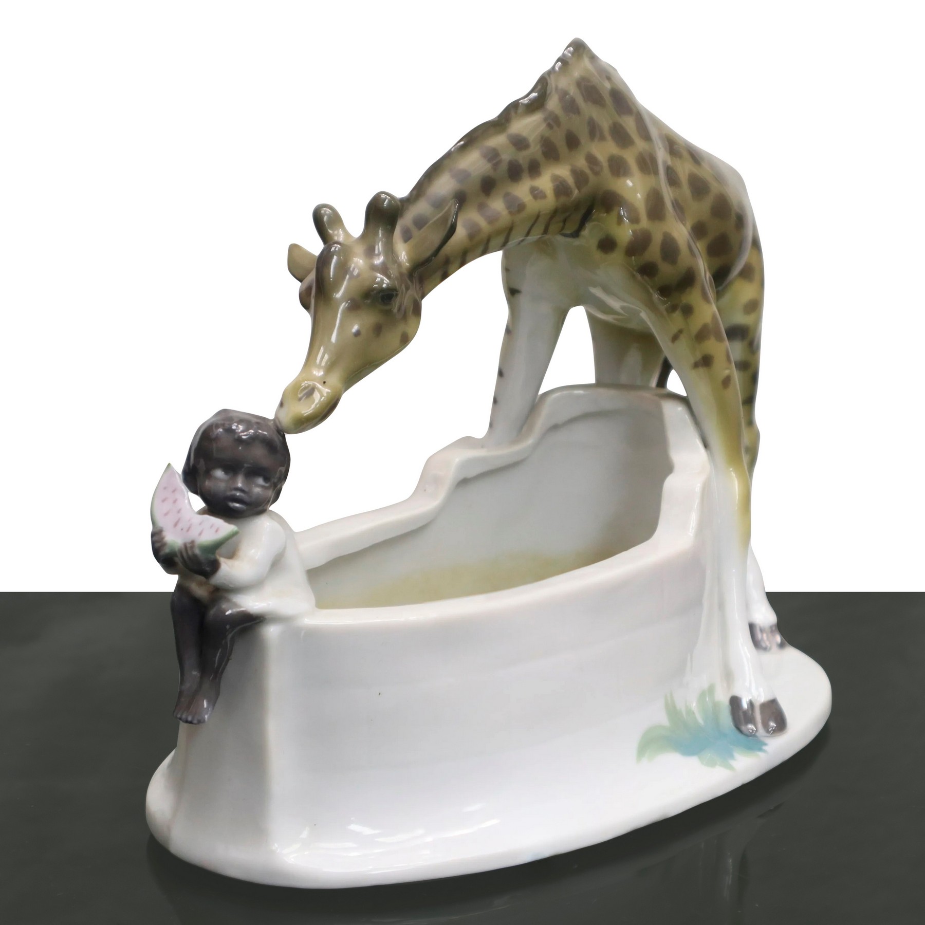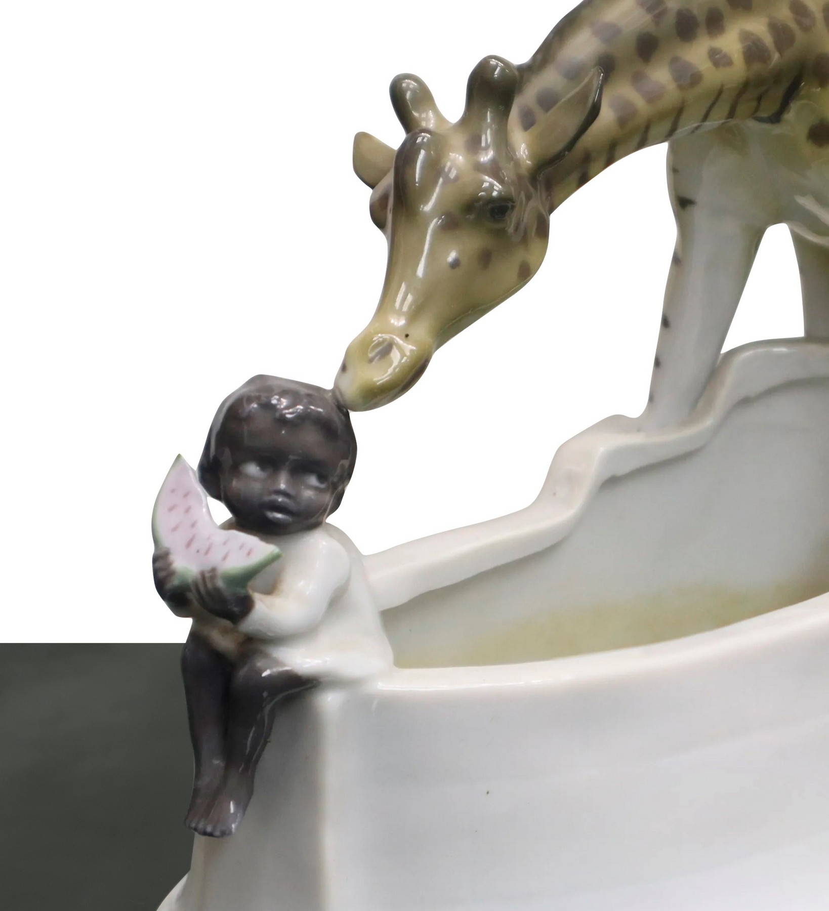 Giraffa con bimbo che mangia l'anguria L cm 18 , H cm 17 Scultura in ceramica
