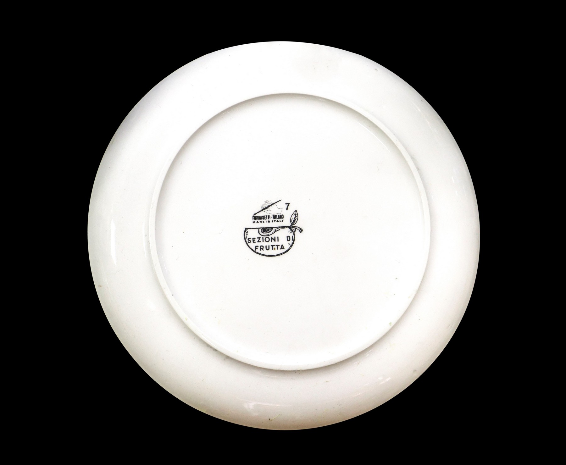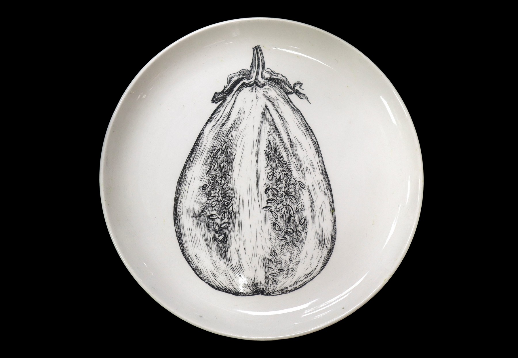 Piero Fornasetti - Piatto in porcellana bianca con Melanzana, serie Sezioni di Frutta, N.7 Diametro cm 23