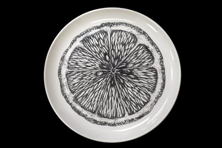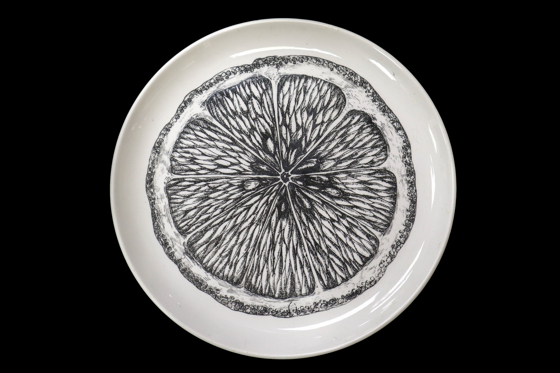 Piero Fornasetti - Piatto in porcellana bianca con Arancia, serie Sezioni di Frutta, N.1 Diametro cm 23