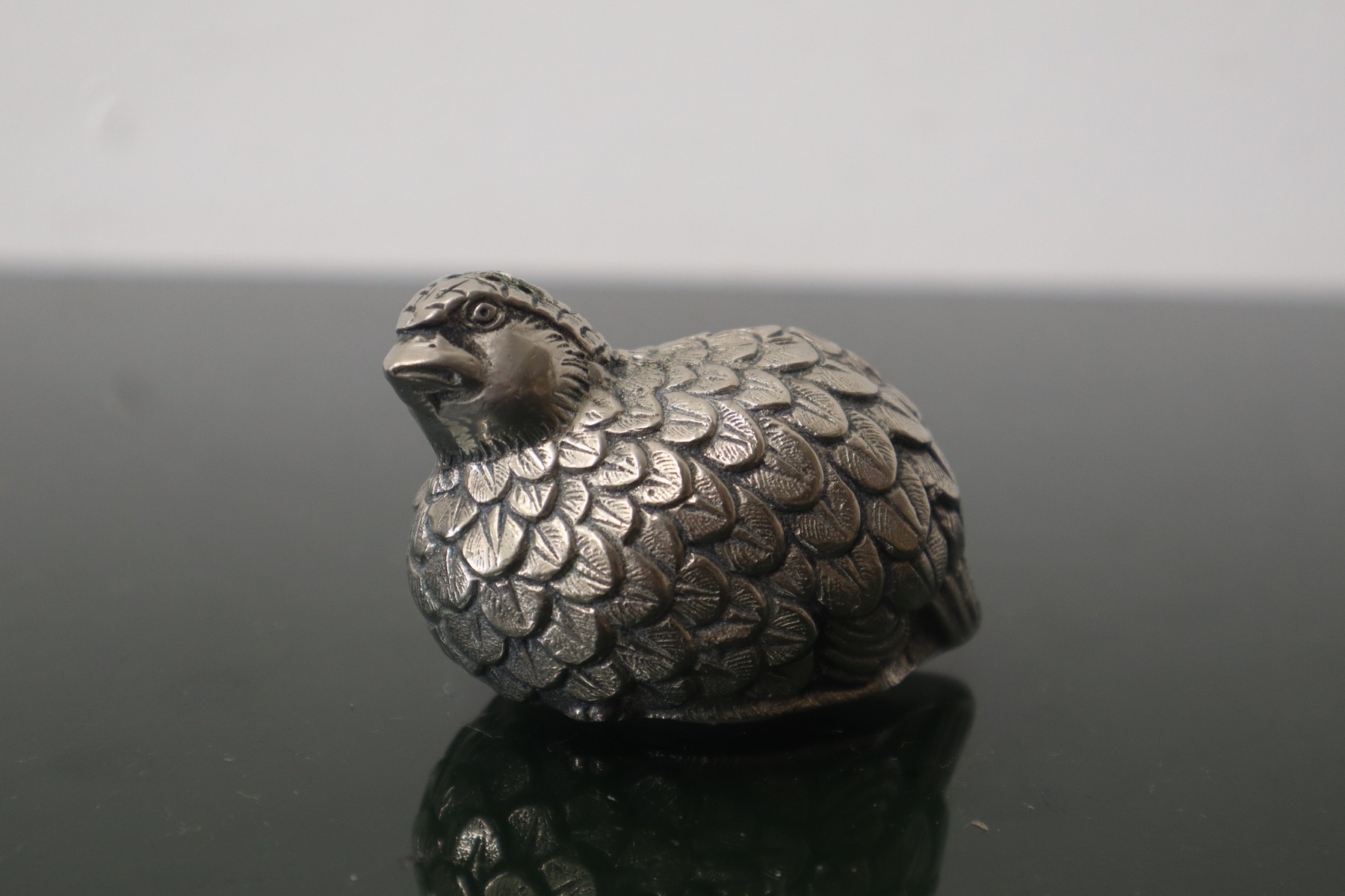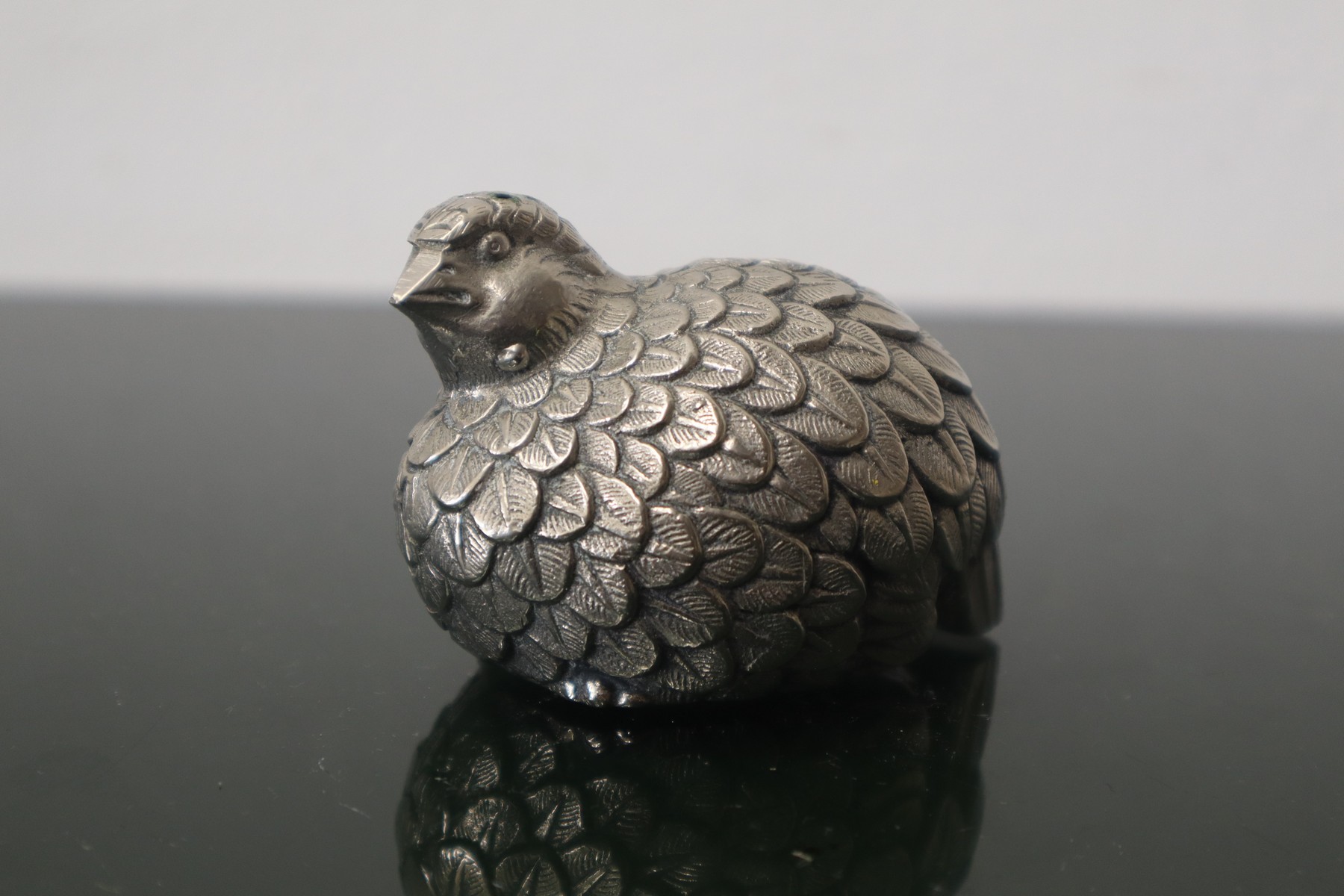 Gucci - Tris sale e pepe composto da tre quaglie in peltro argentato , 60s/70s.