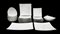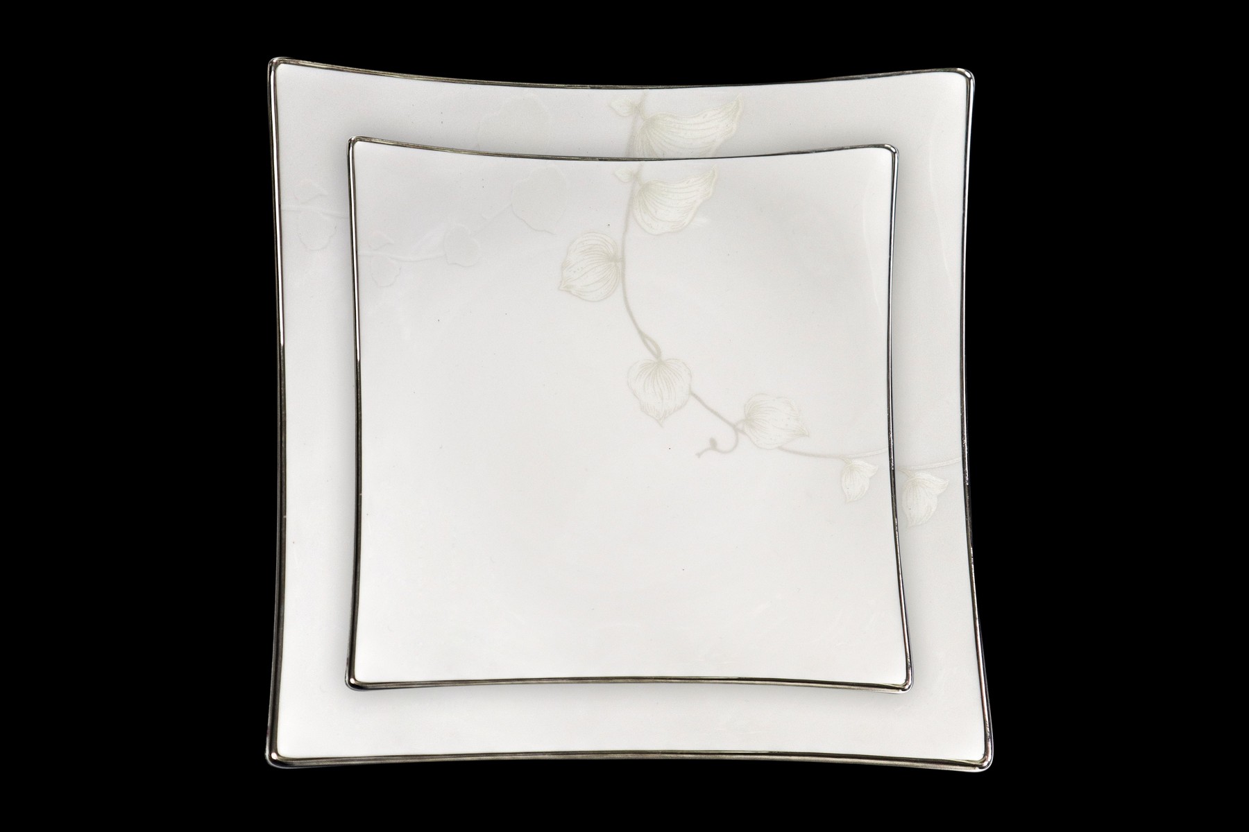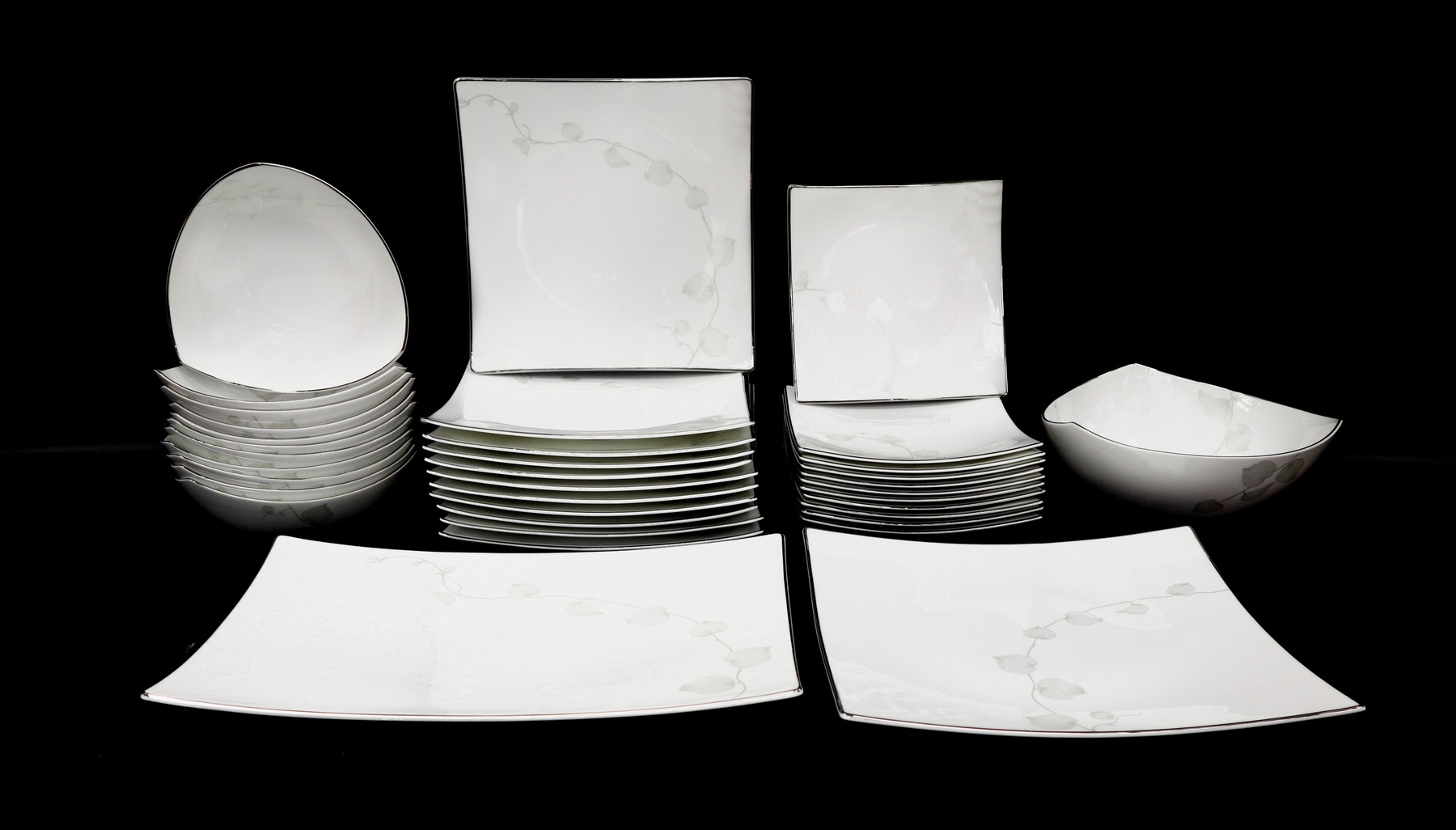 Royal Bone China - Servizio di piatti in porcellana per 11 persone Servizio composto da: 11 piatti piani, 11 piatti fondi, 11 piatti frutta, 1 piatto rettangolare da portata, 1 piatto quadrato da portata e 1 insalatiera