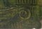 G. Belfiore - Panello decorativo raffigurante Uomo su colonne e gru nei toni del verde