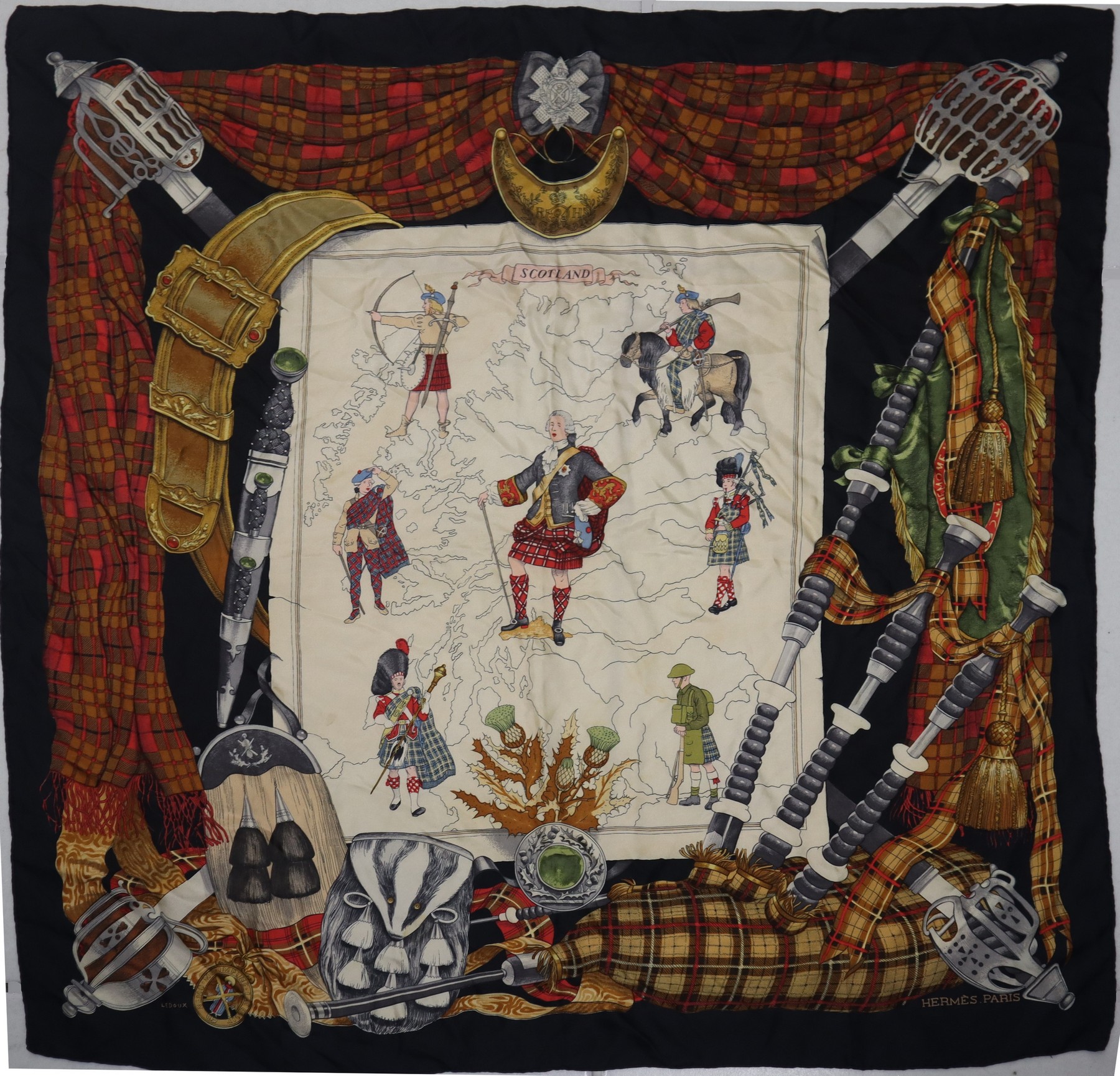Philippe Ledoux per Hermès Paris - Foulard vintage in seta "Scotland"