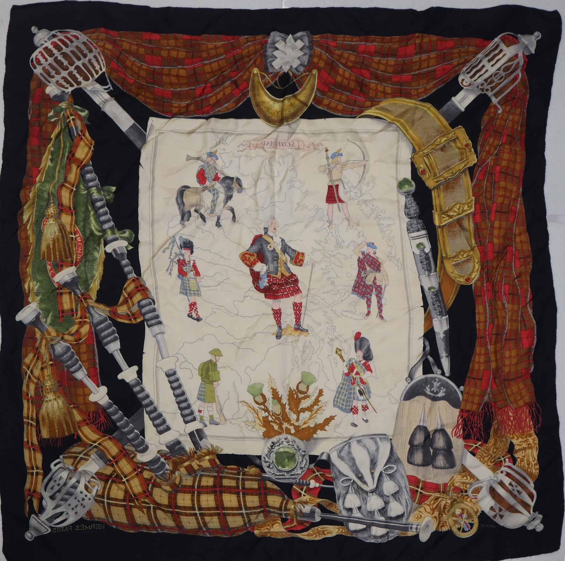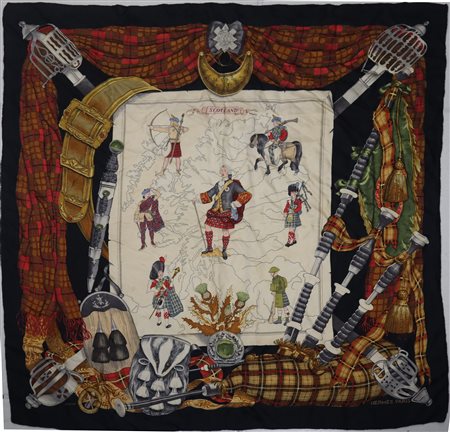 Philippe Ledoux per Hermès Paris - Foulard vintage in seta "Scotland" cm 88 x 88