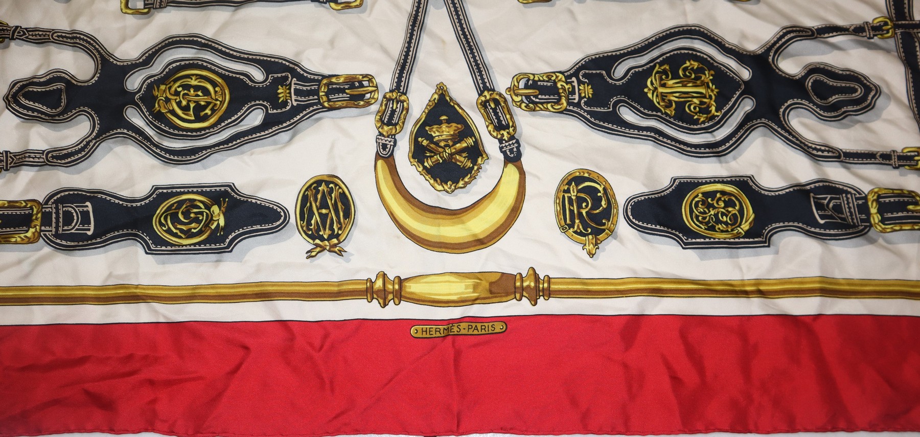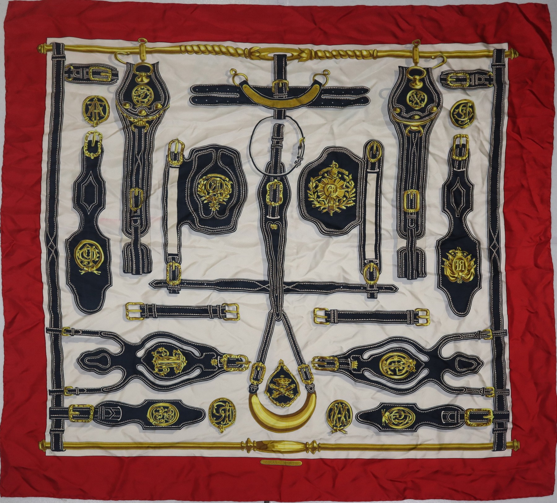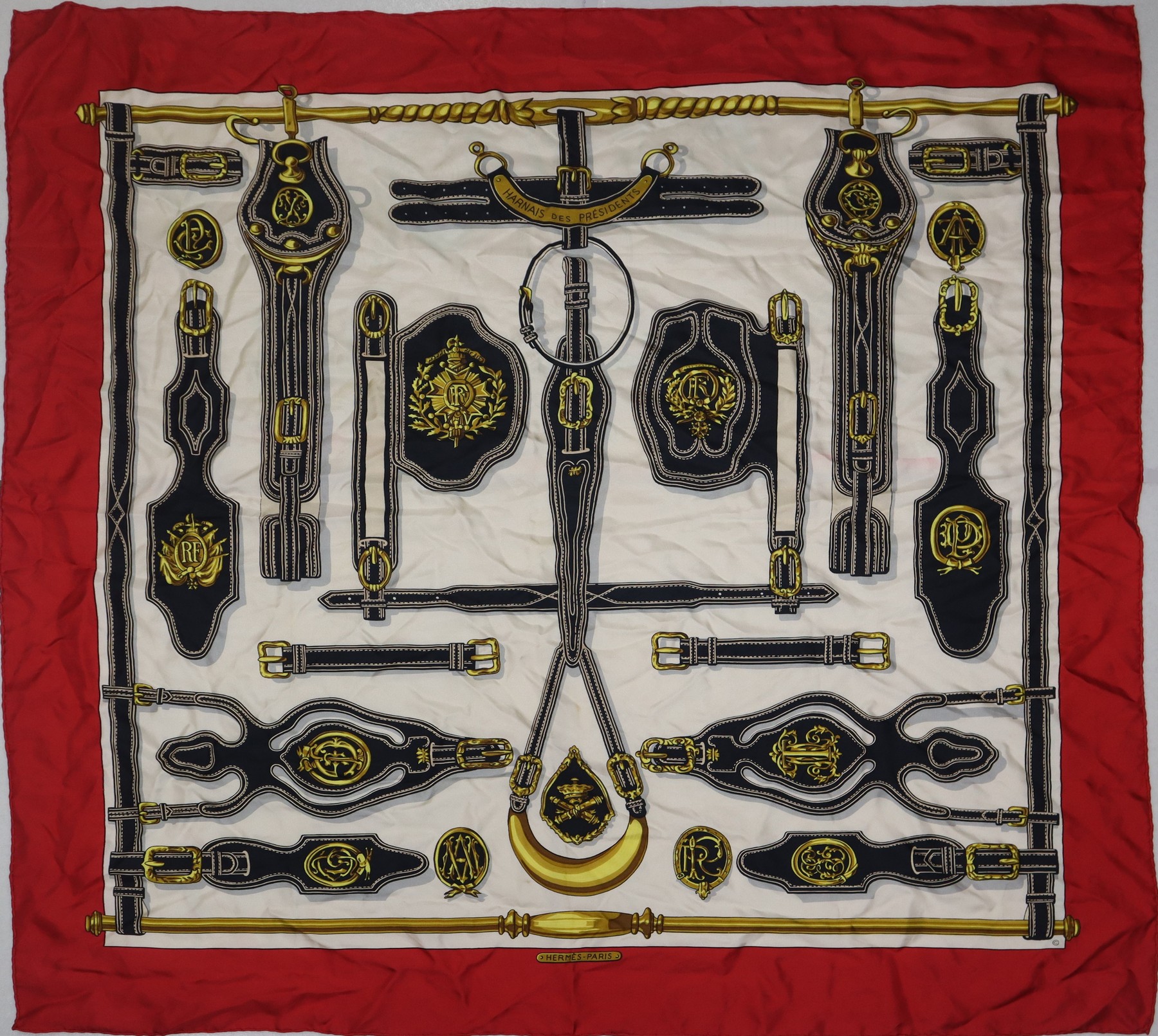 Marie-Françoise Héron per Hermès Paris - Foulard vintage in seta nei toni del rosso oro e nero, 1966
