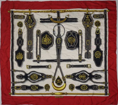 Marie-Françoise Héron per Hermès Paris - Foulard vintage in seta nei toni del rosso oro e nero, 1966 cm 84 x 87