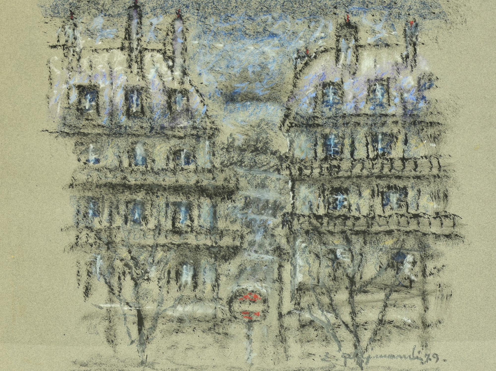 Enrico Allimandi PARIGI pastelli su carta, cm 43x56 firma e data eseguito nel...