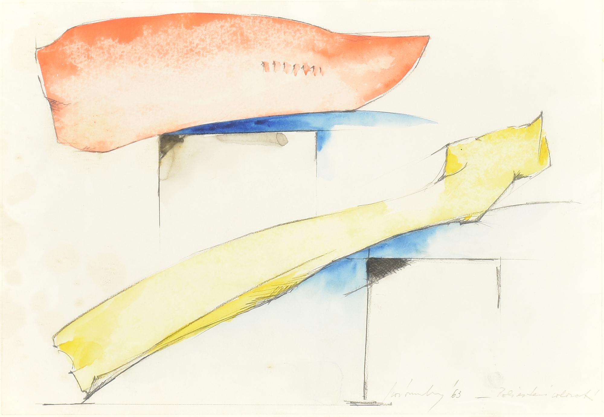 Ignoto POLIGONI COLORATI tecnica mista su carta, cm 23,5x33,5 firma e titolo...
