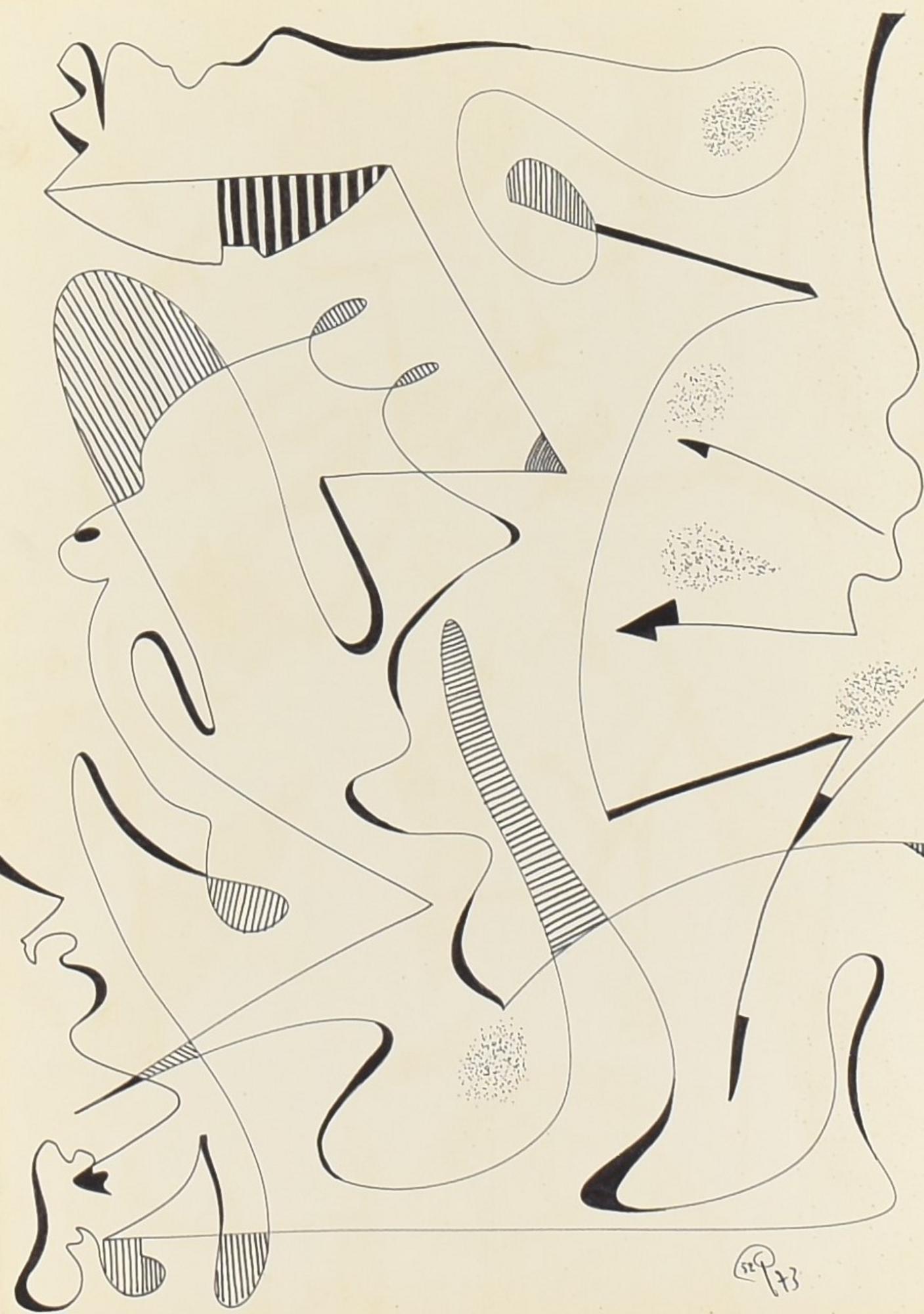 Ignoto COMPOSIZIONI lotto di 4 pennarelli su carta, cm 34x24 ciascuno sigla e...