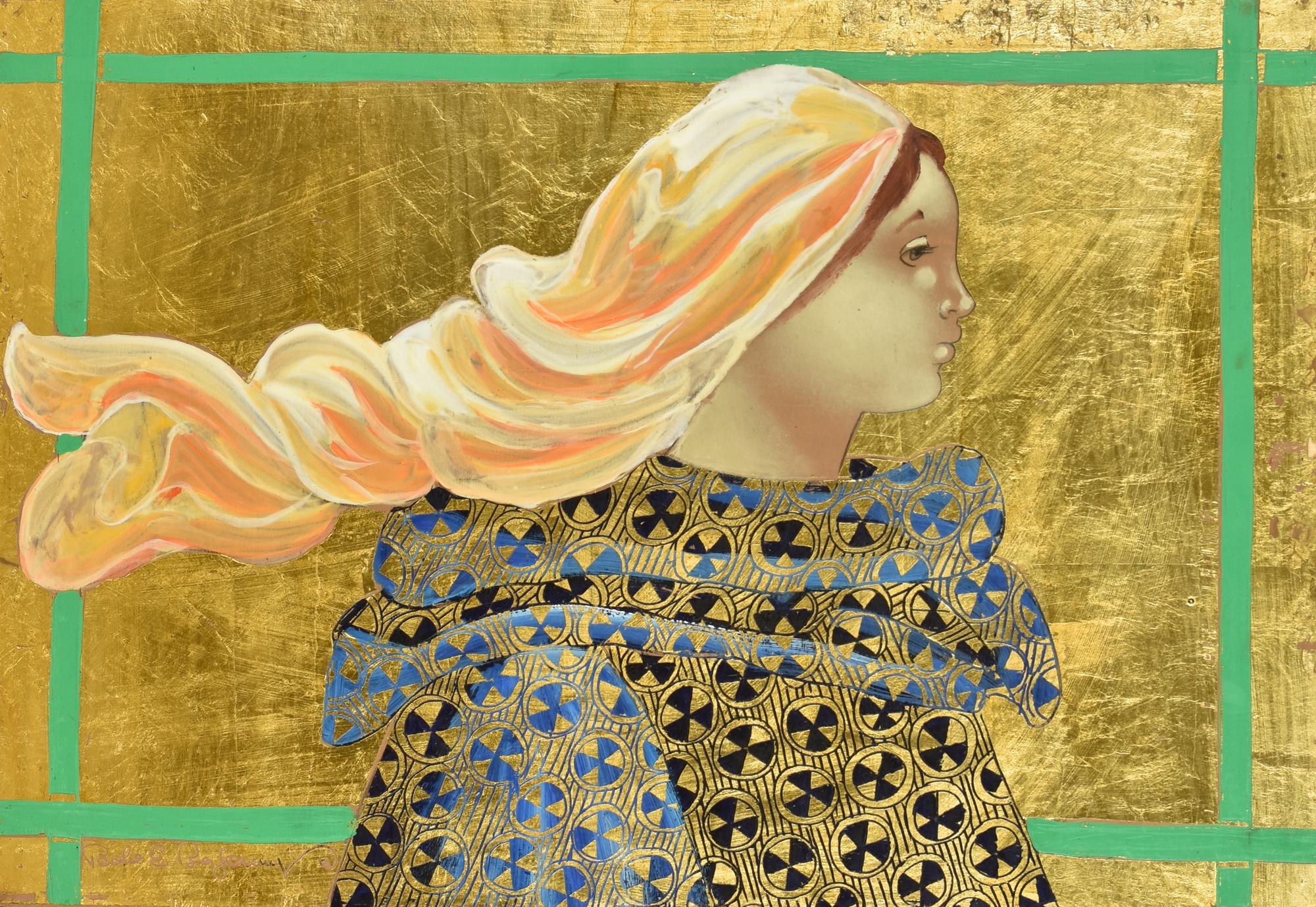 Paolo Emilio Bergamaschi DONNA CON FOULARD BLU tecnica mista su tavola, cm...