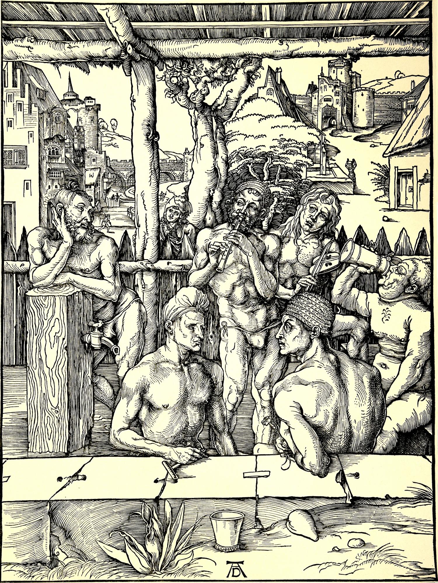 Albrecht (Da) Durer BAGNO DI UOMINI xilografia, cm 39x28,5