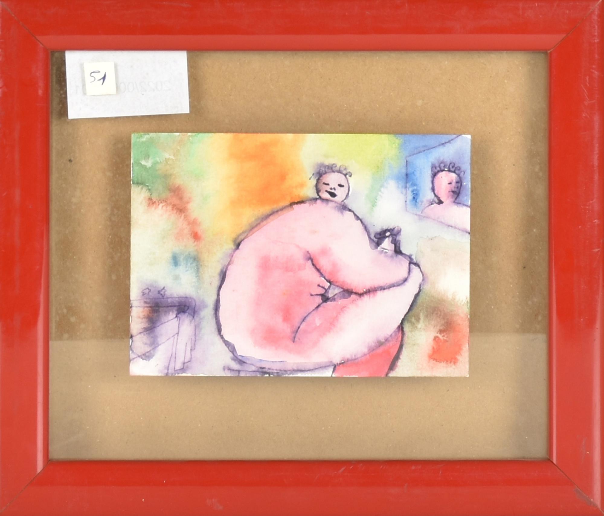 Lotto 98 | Ignoto SENZA TITOLO acquarello su carta, cm 10x15 sul retro: dedica ad personam