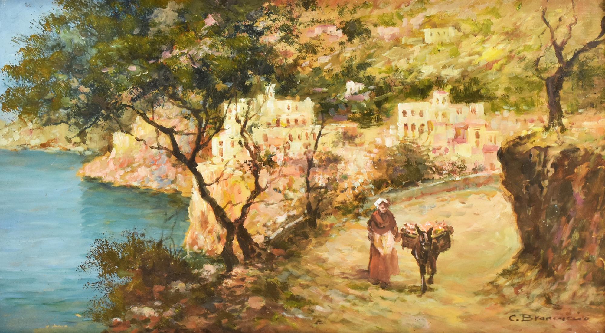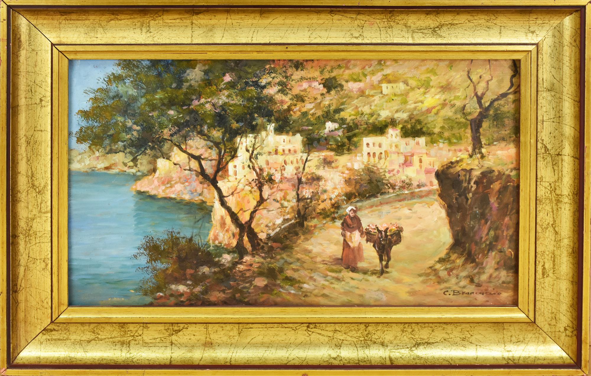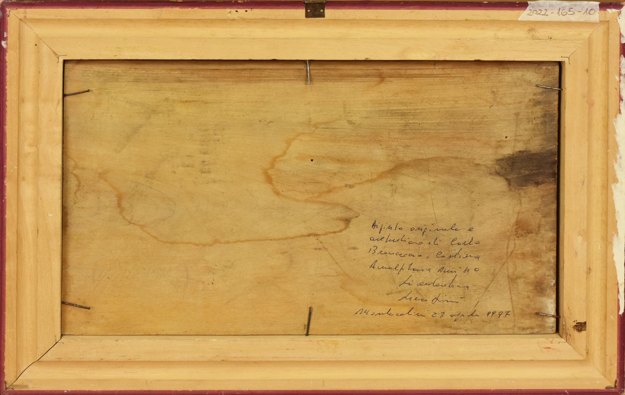 Carlo Brancaccio LA VIA DEL RITORNO olio su tavola, cm 24x40 firma sul retro:...