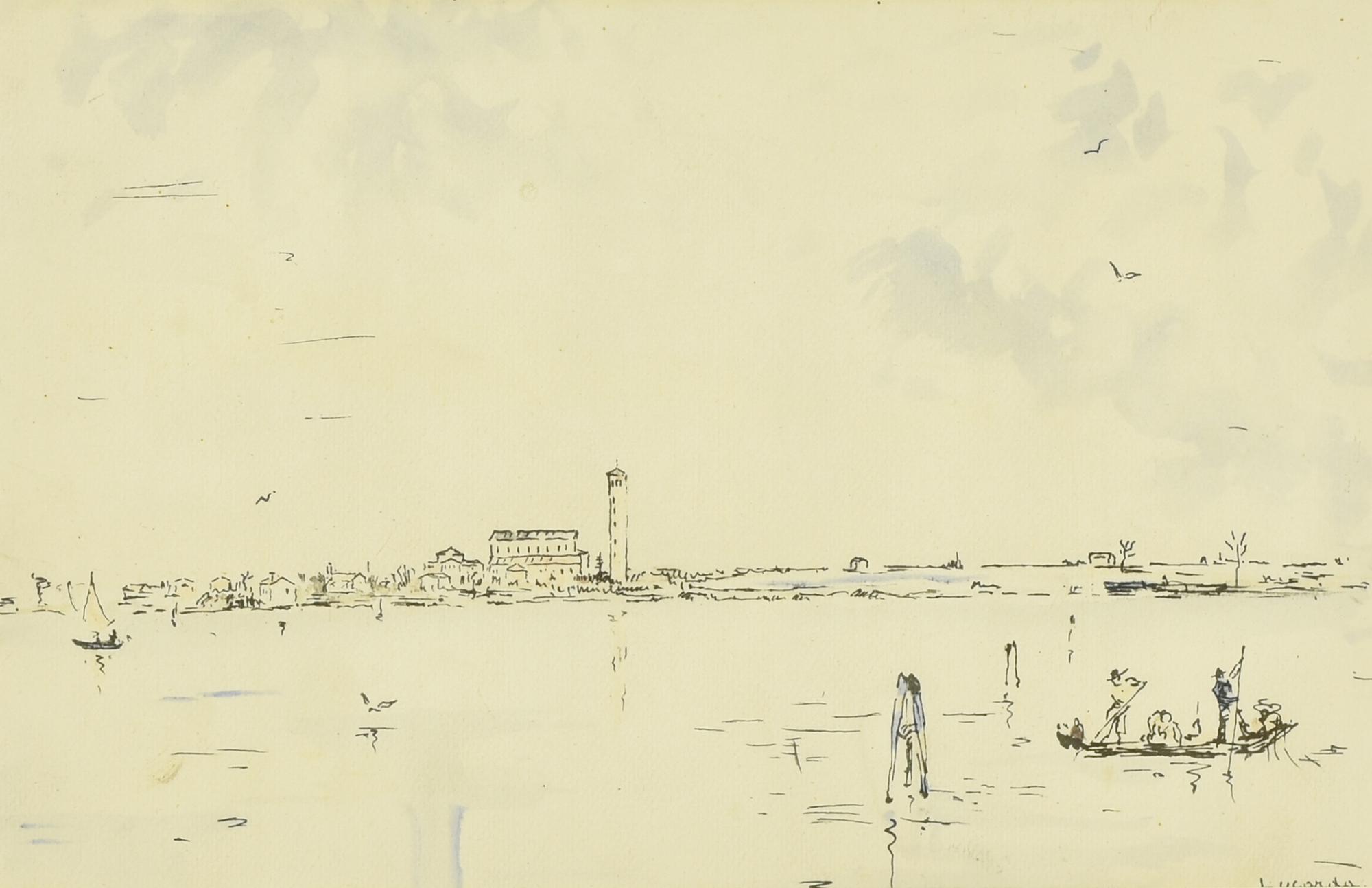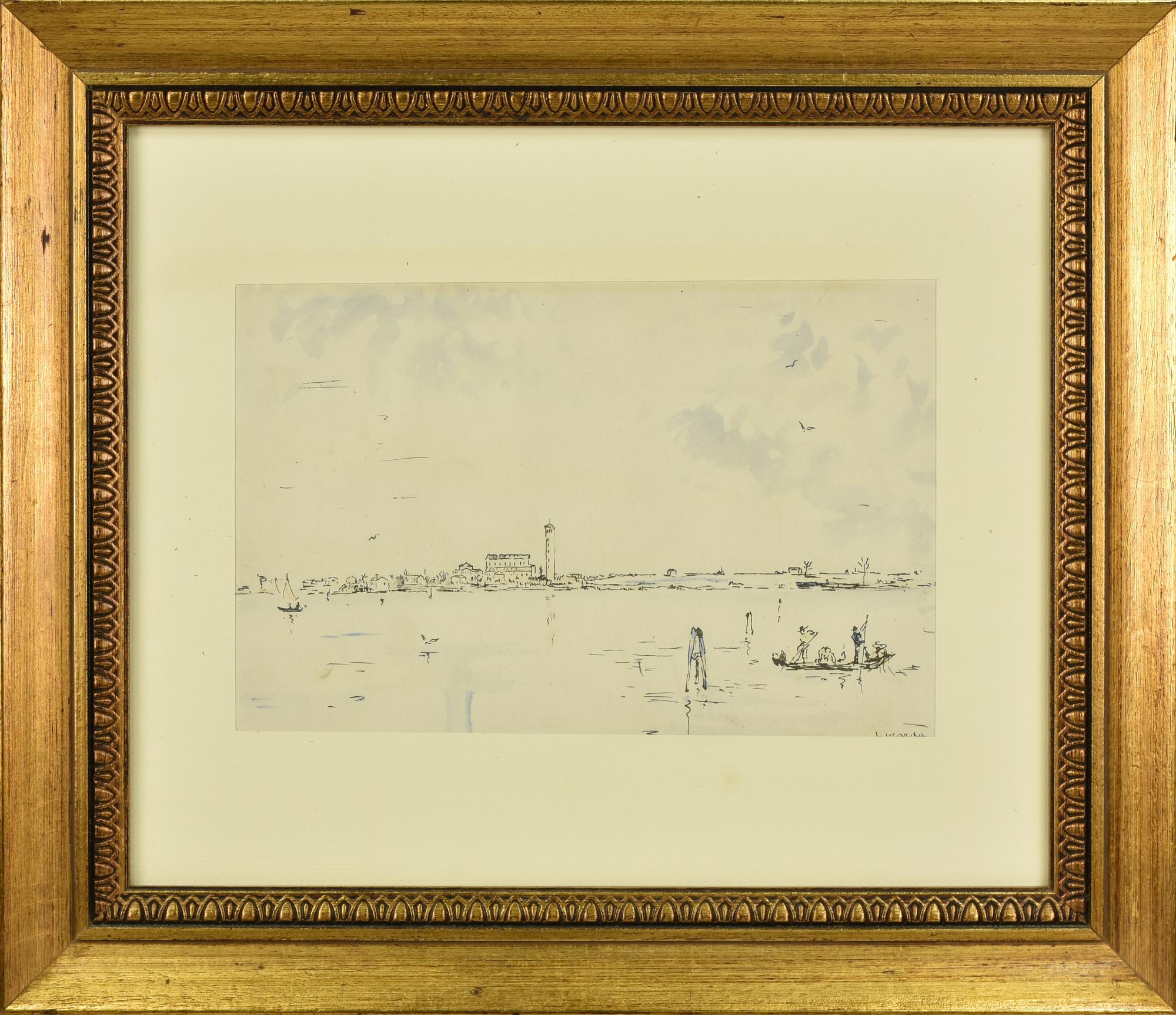 Antonio Lucarda LAGUNA VENEZIANA china acquarellata su carta, cm 19x30 firma