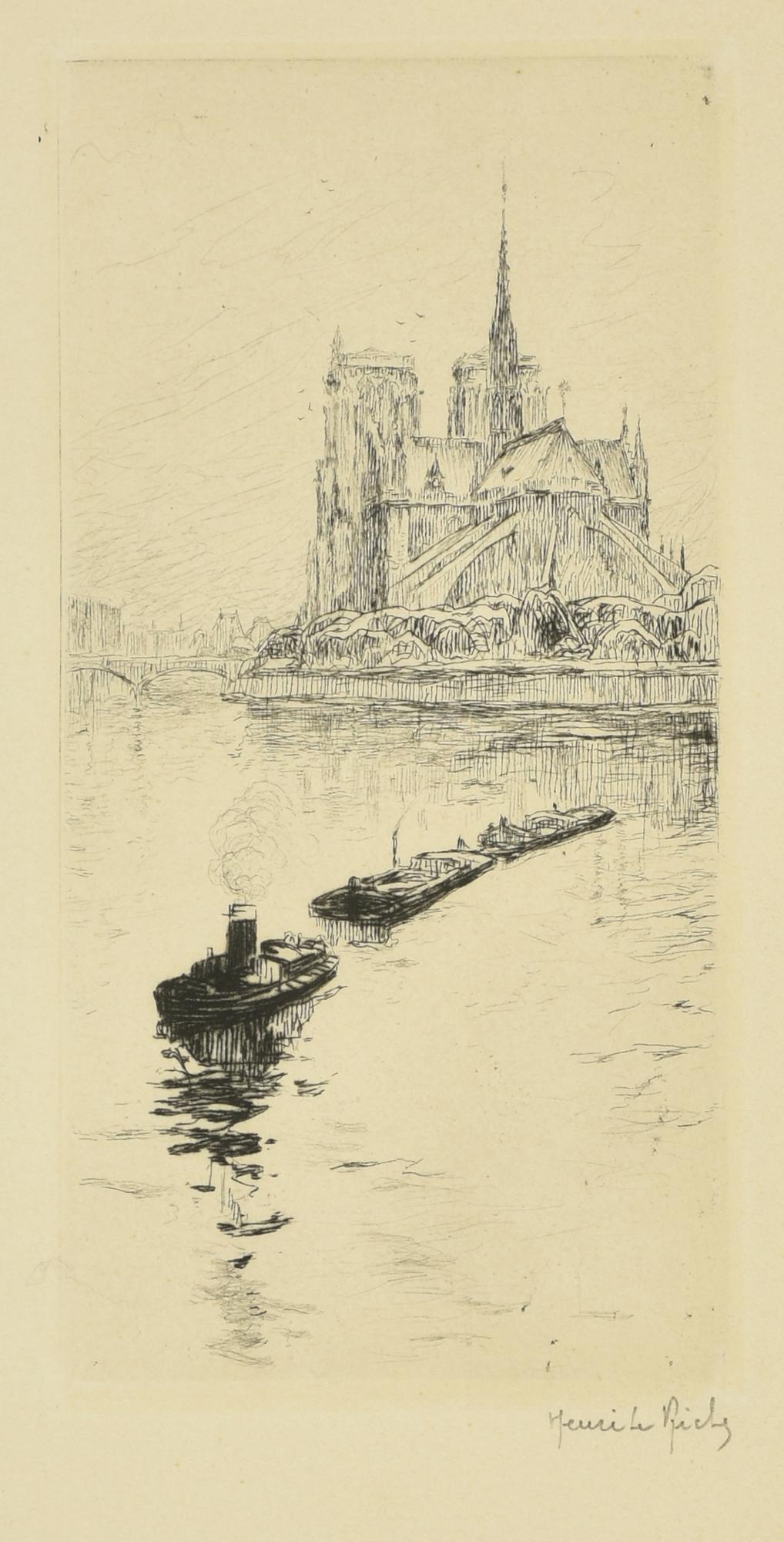 Henri Le Riche NOTRE DAME incisione su carta, battuta cm 19x10, su foglio cm...