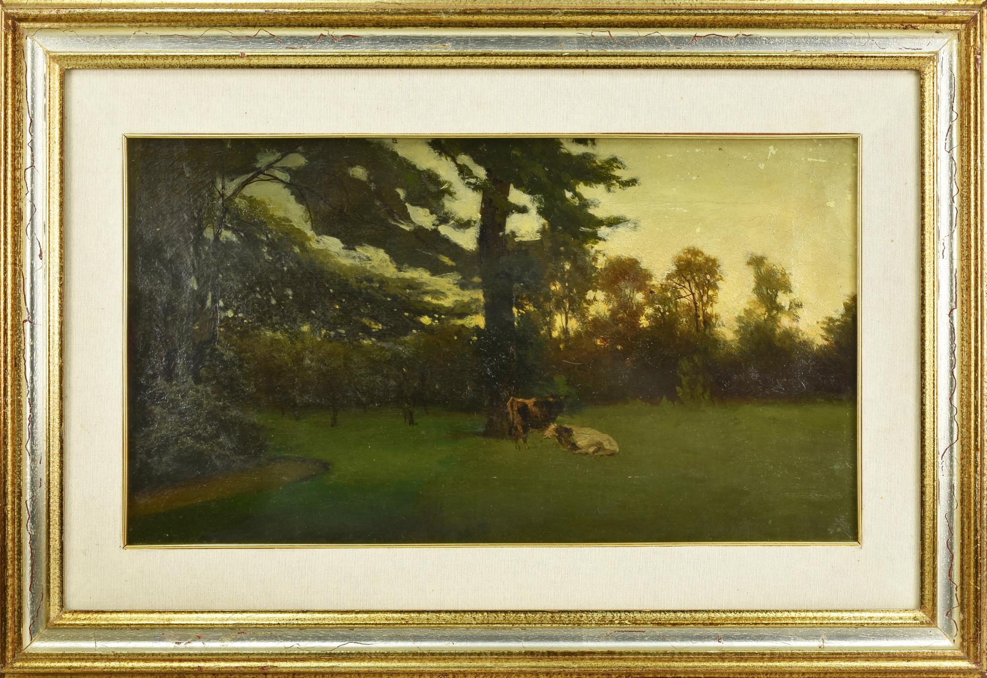 Anonimo MUCCHE AL PASCOLO olio su tela, cm 30x53 L'opera craquelure diffusa e...