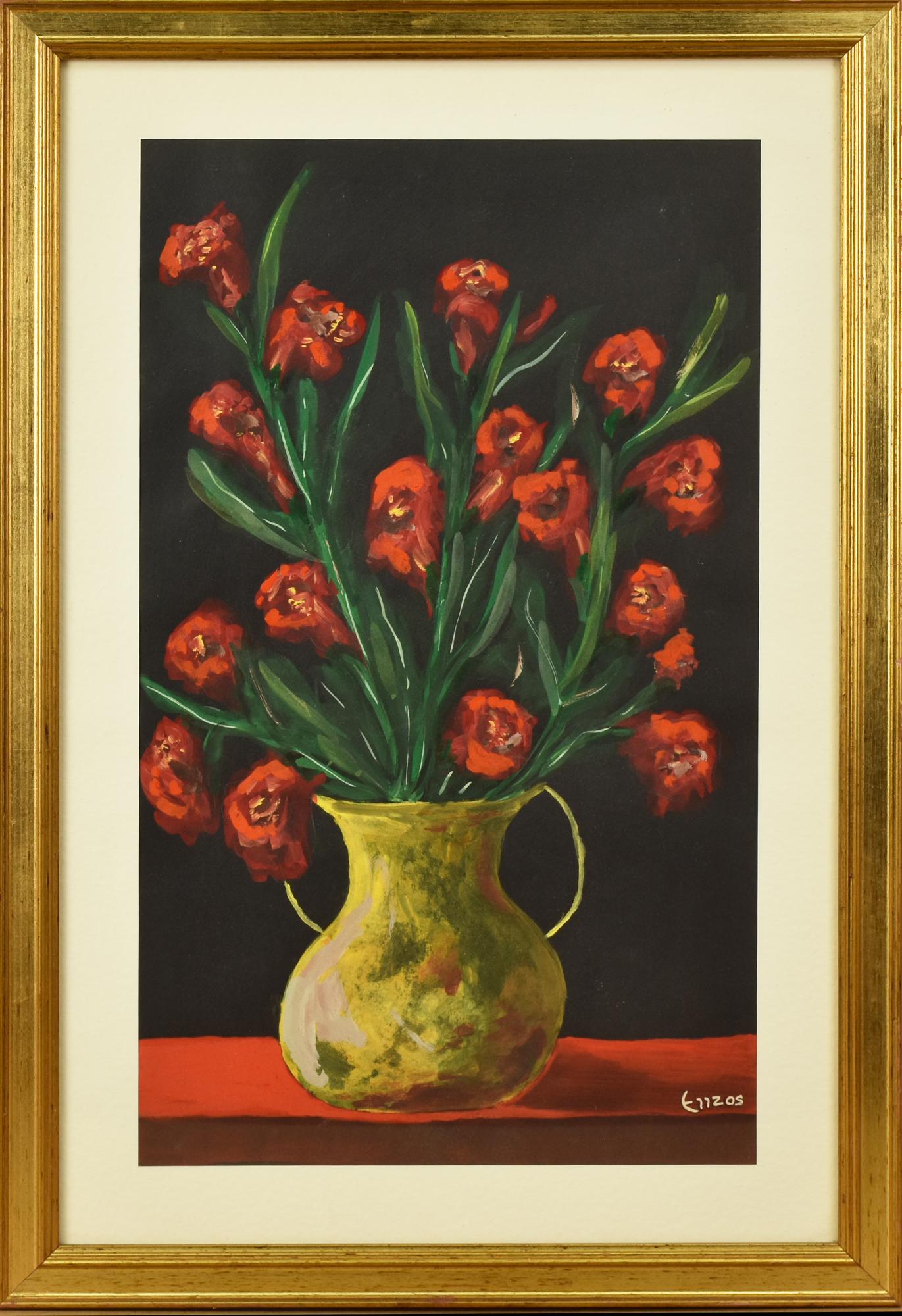 Ignoto VASO DI FIORI olio su carta, cm 48x28 firma