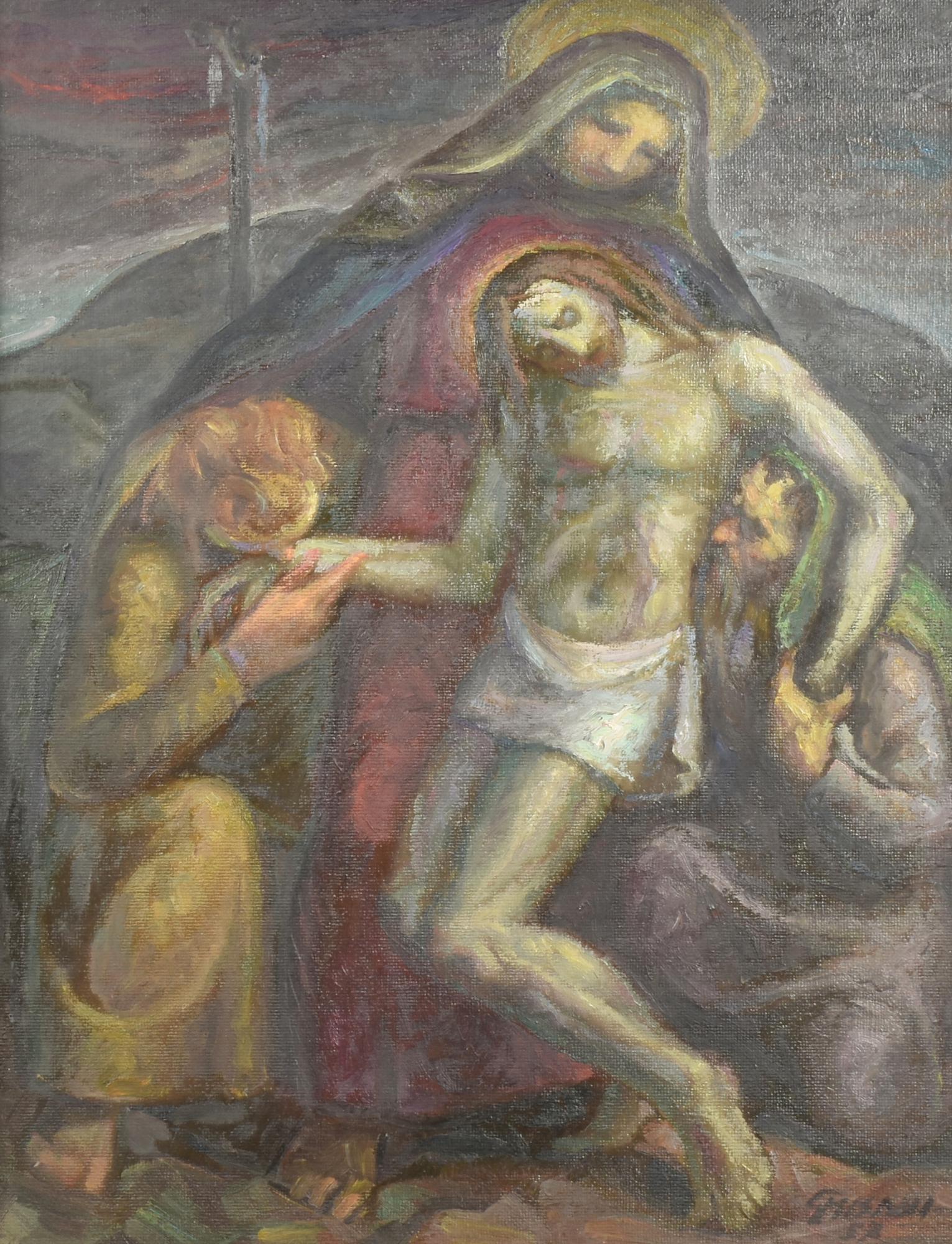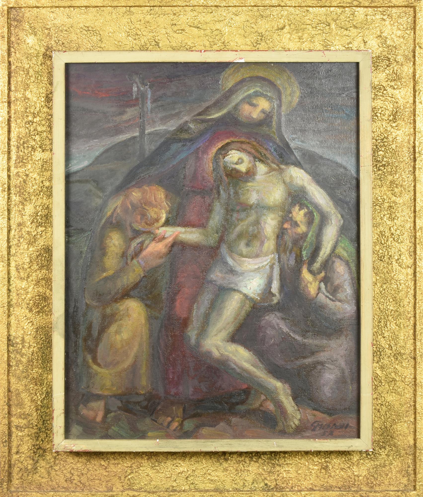 Giovanni Misani PIETA' olio su tela, cm 78x66 firma e data non distinguibile