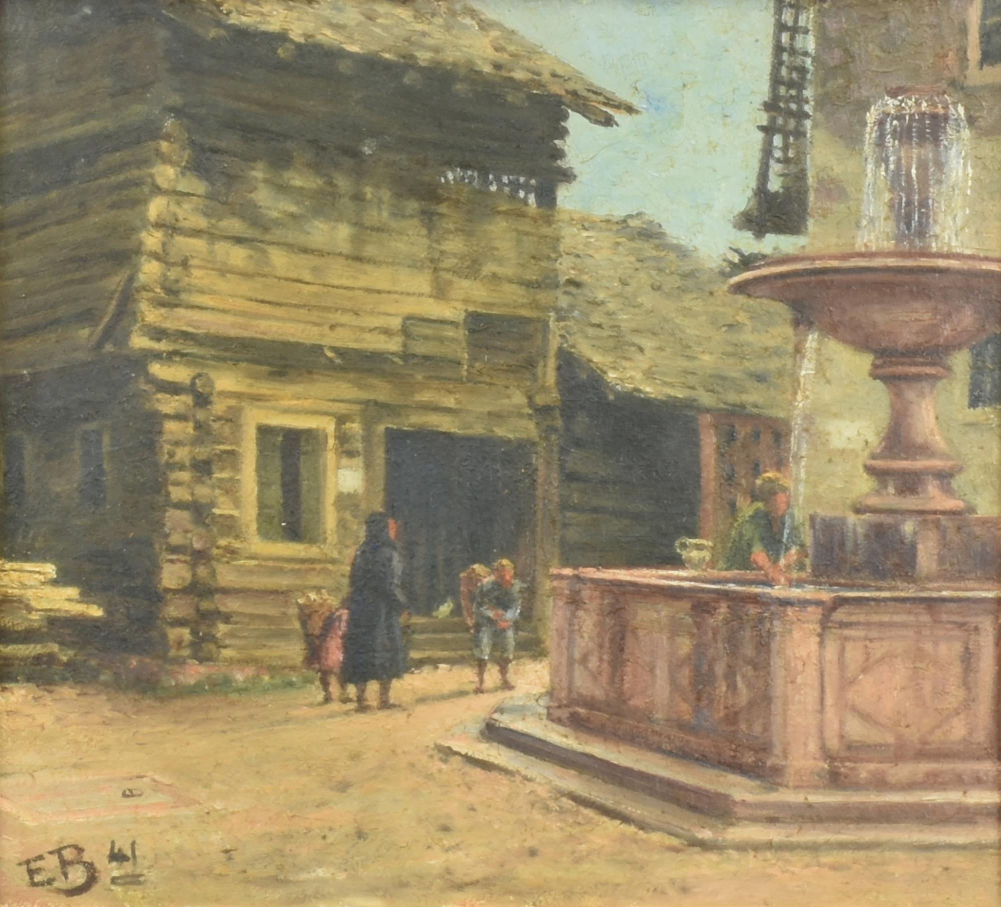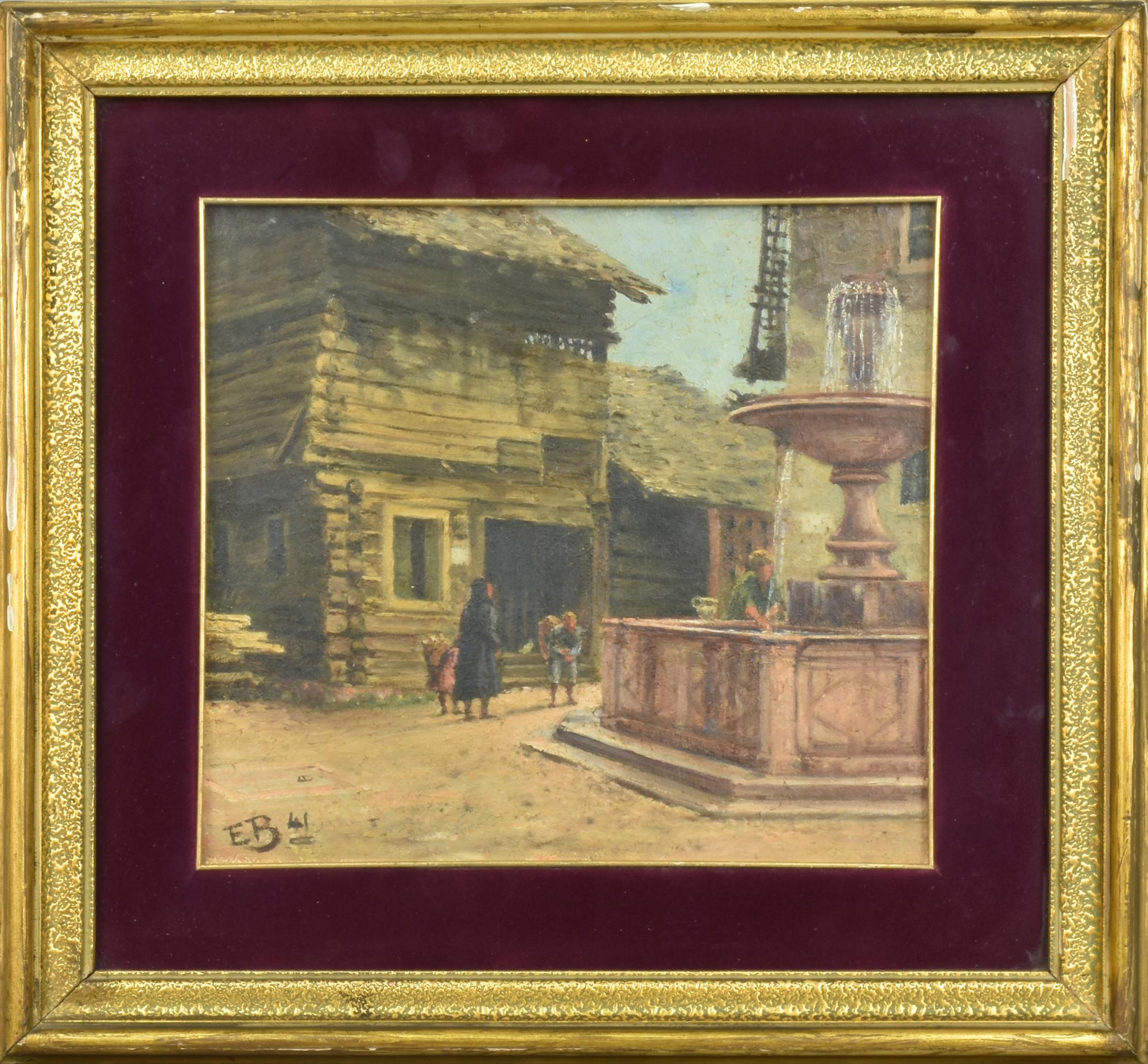 Ignoto VITA DI VILLAGGIO acrilico su tavola, cm 25x25 firma