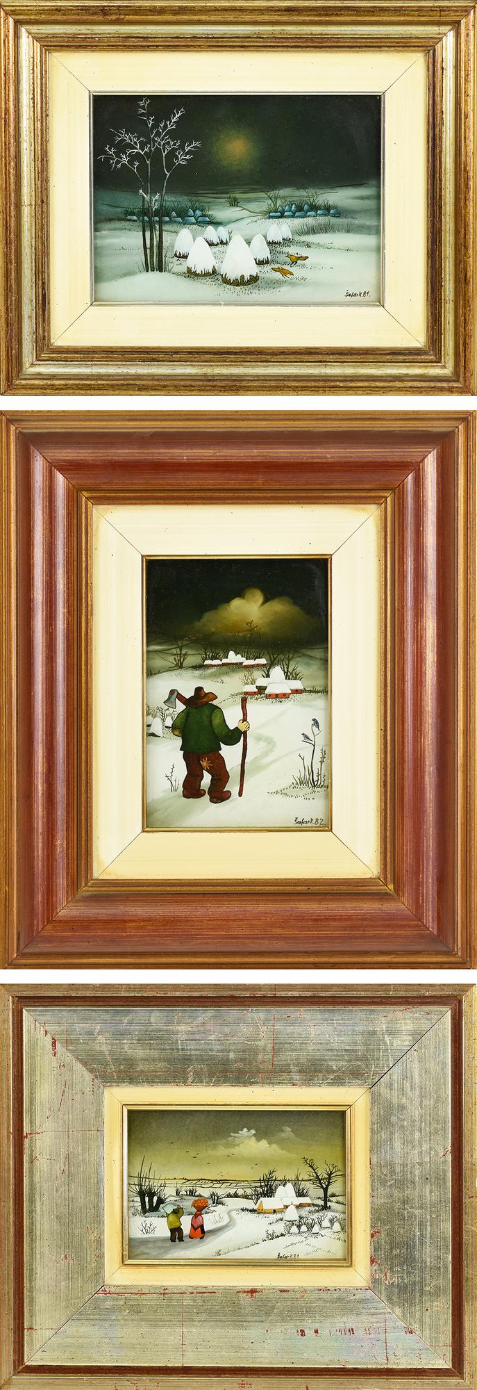 Kreso Safar LOTTO DI 3 QUADRI NAIF composto da: -olio su vetro, cm 12x19...