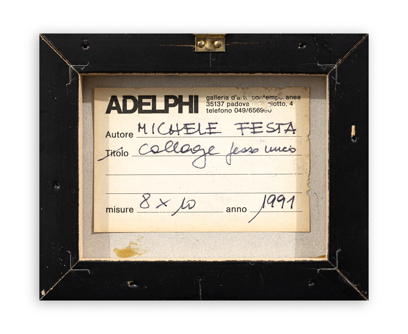 Etichetta della Galleria d'Arte Adelphi (PD) al retro