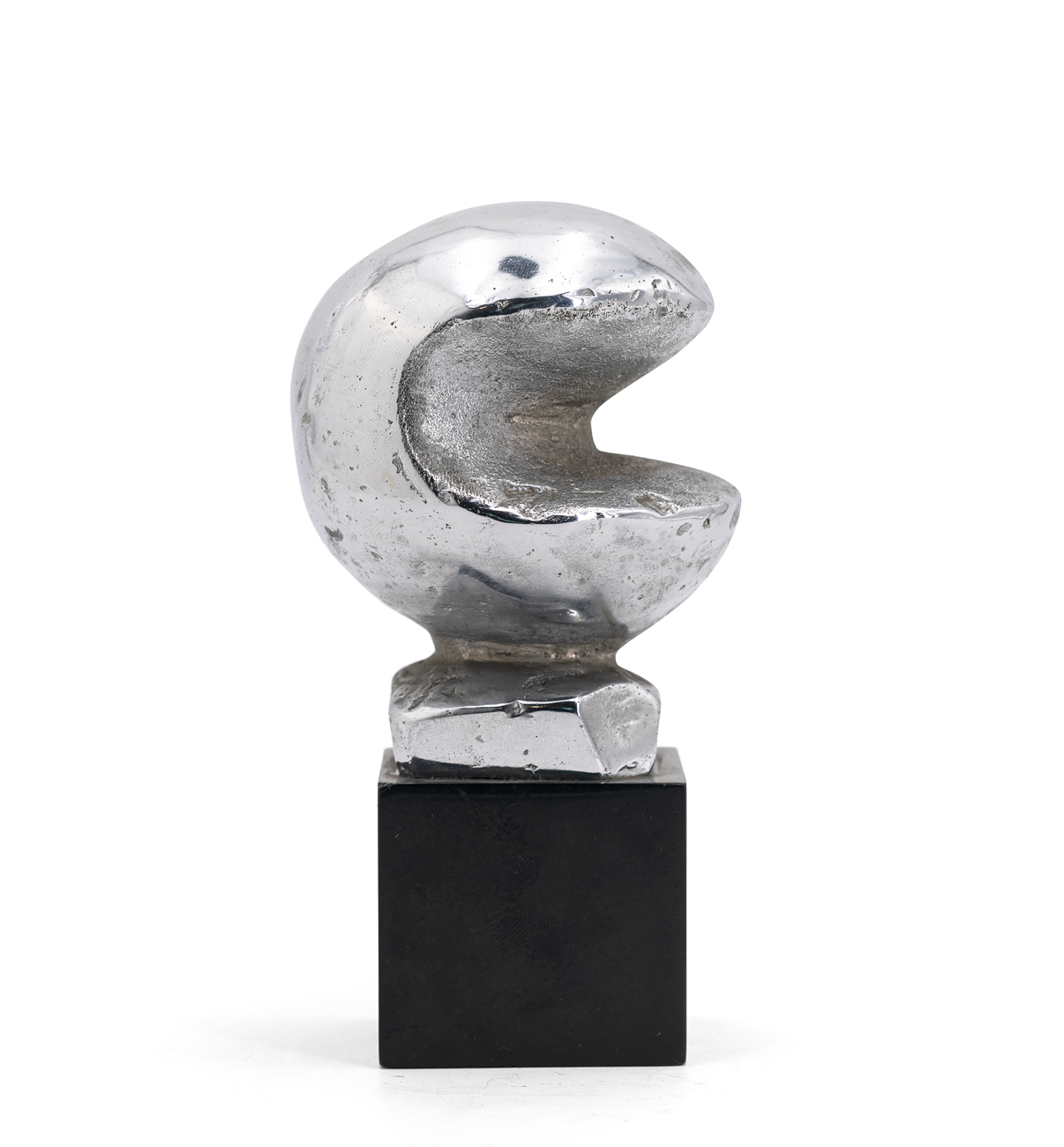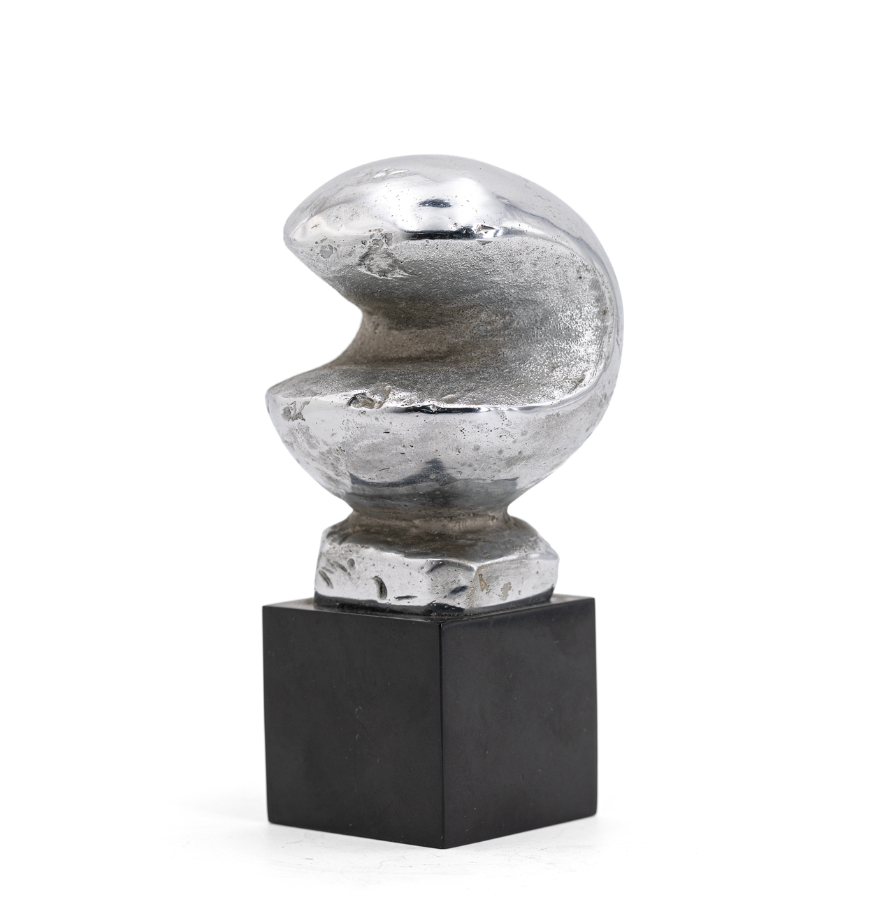 Etichetta della Galleria Borgonuovo (MI), con caratteristiche tecniche dell'opera, sotto la base