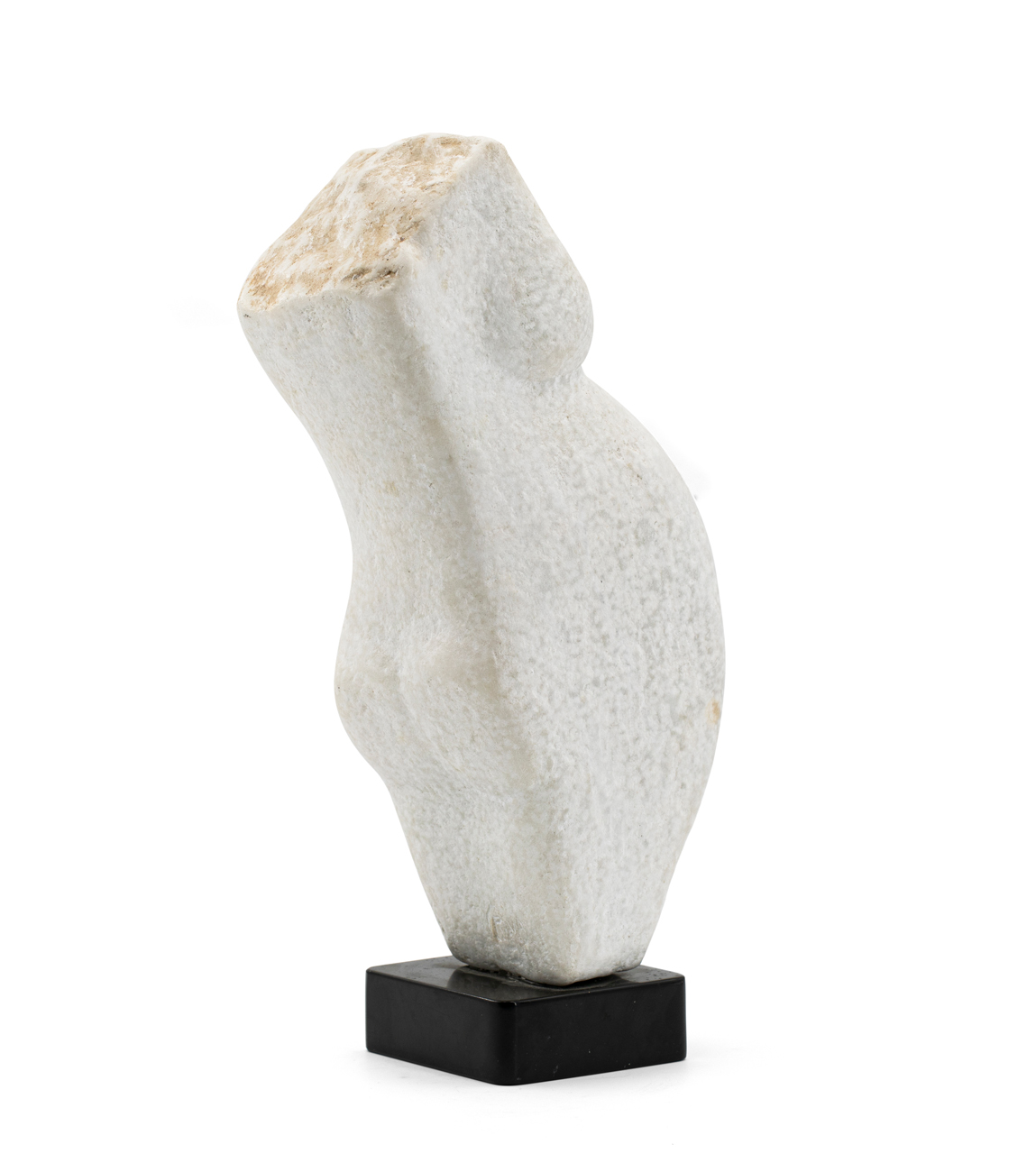 Scultura in marmo bianco di Carrara poggiante su base in marmo
