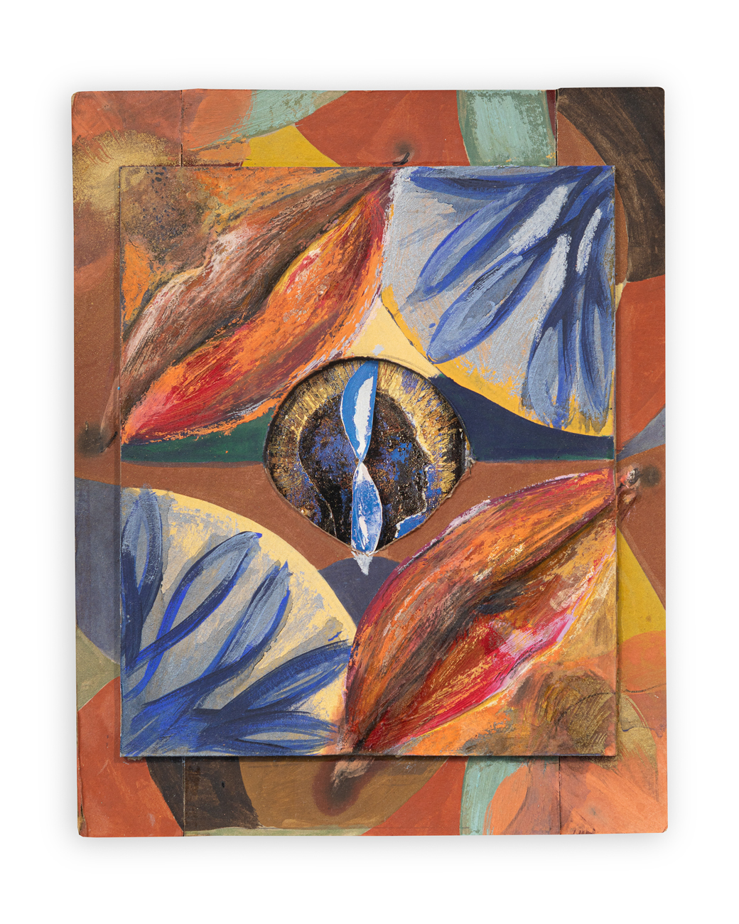 Olio e tecnica mista su cartoni sagomati sovrapposti