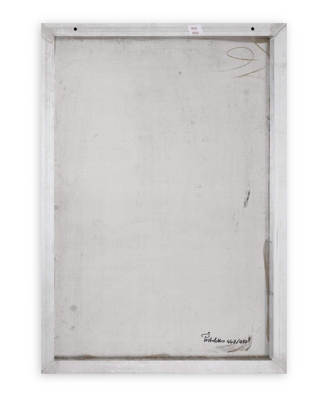 Firma e numerazione (Esemplare 448/450) a pennarello al retro