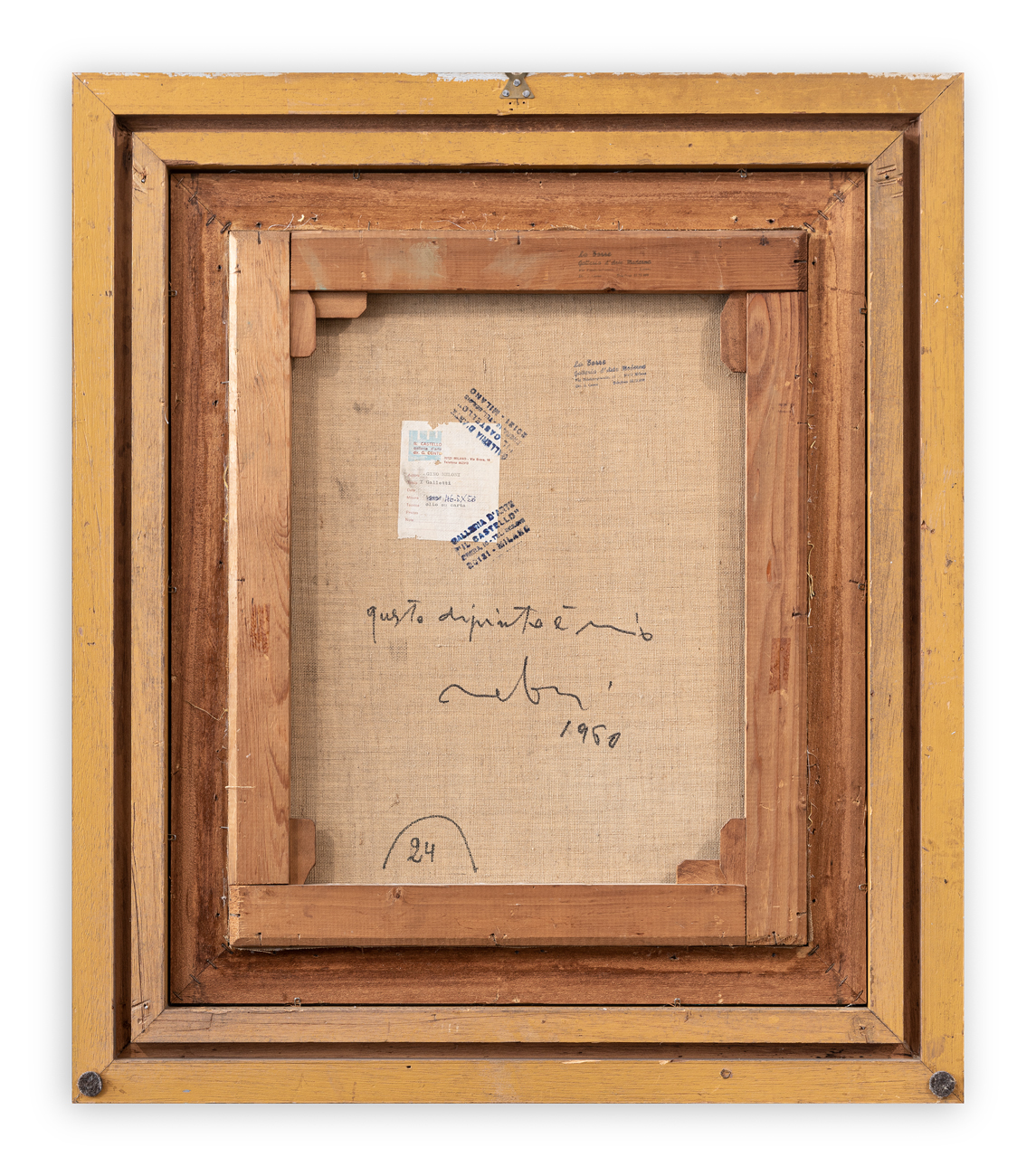 Etichetta e timbri della Galleria d'Arte 'Il Castello' (MI)