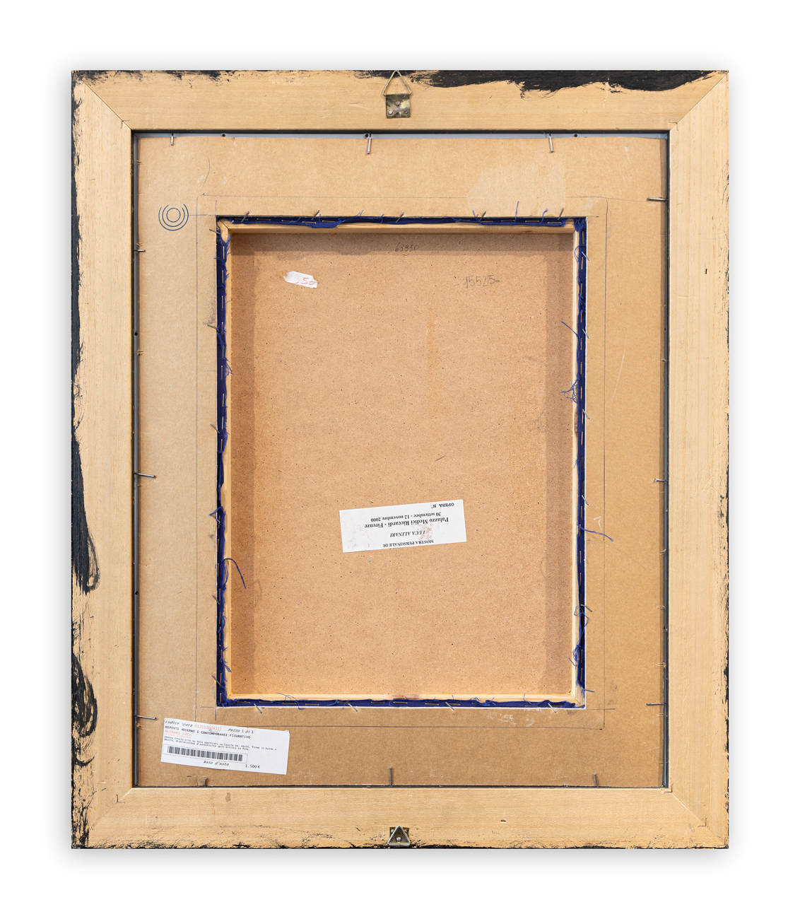 Etichetta della 'Mostra Personale di Luca Alinari - Palazzo Medici Ricciardi - 30 Settembre - 12 Novembre 2000' al retro