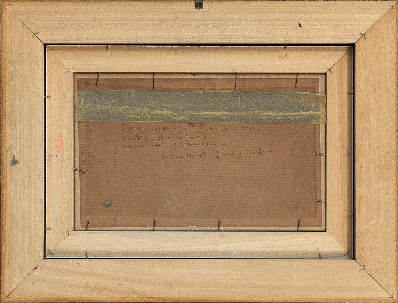 Dichiarazione di autenticità a cura di Giovanna Carpi, figlia dell'Artista, al retro