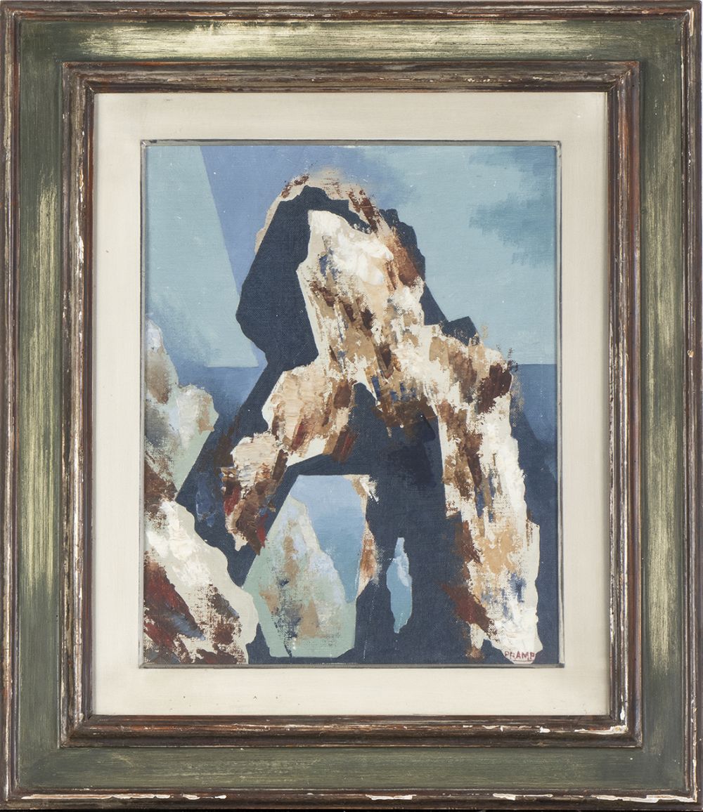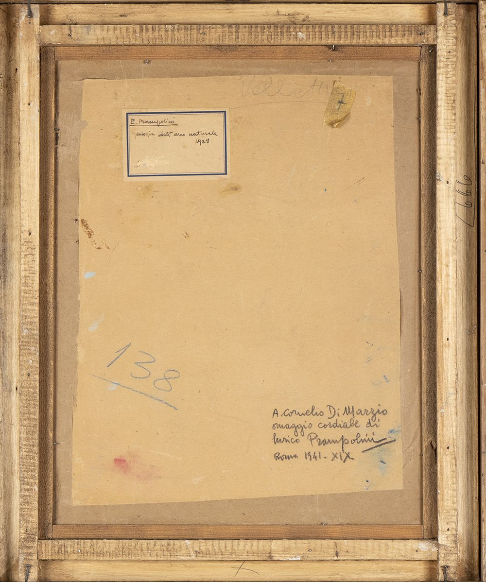 Firmato in basso a destra: Prampolini. Al retro titolo e anno: Geologia dell'arco naturale, 1928; dedica in basso a destra: a Cornelio Di Marzio omaggio cordiale di Enrico Prampolini, Roma 1941 - XIX