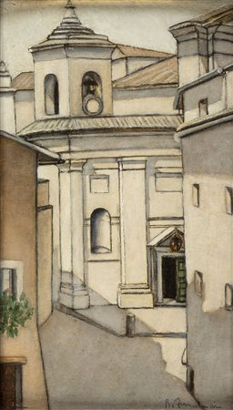 RICCARDO FRANCALANCIA (Assisi, 1886 - Roma, 1965): Scorcio con veduta della cattedrale di Gallese, anni '30 ca.
