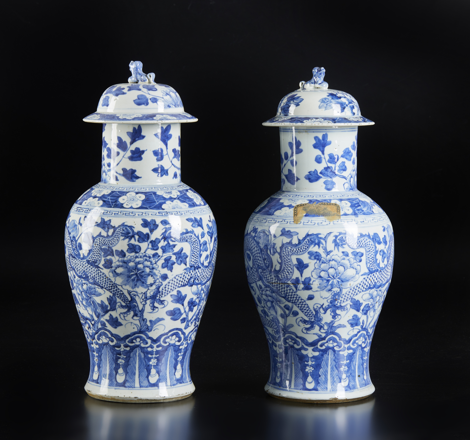 Arte Cinese - Due grandi vasi a balaustro con coperchio Cina, Qing, XVIII secolo .