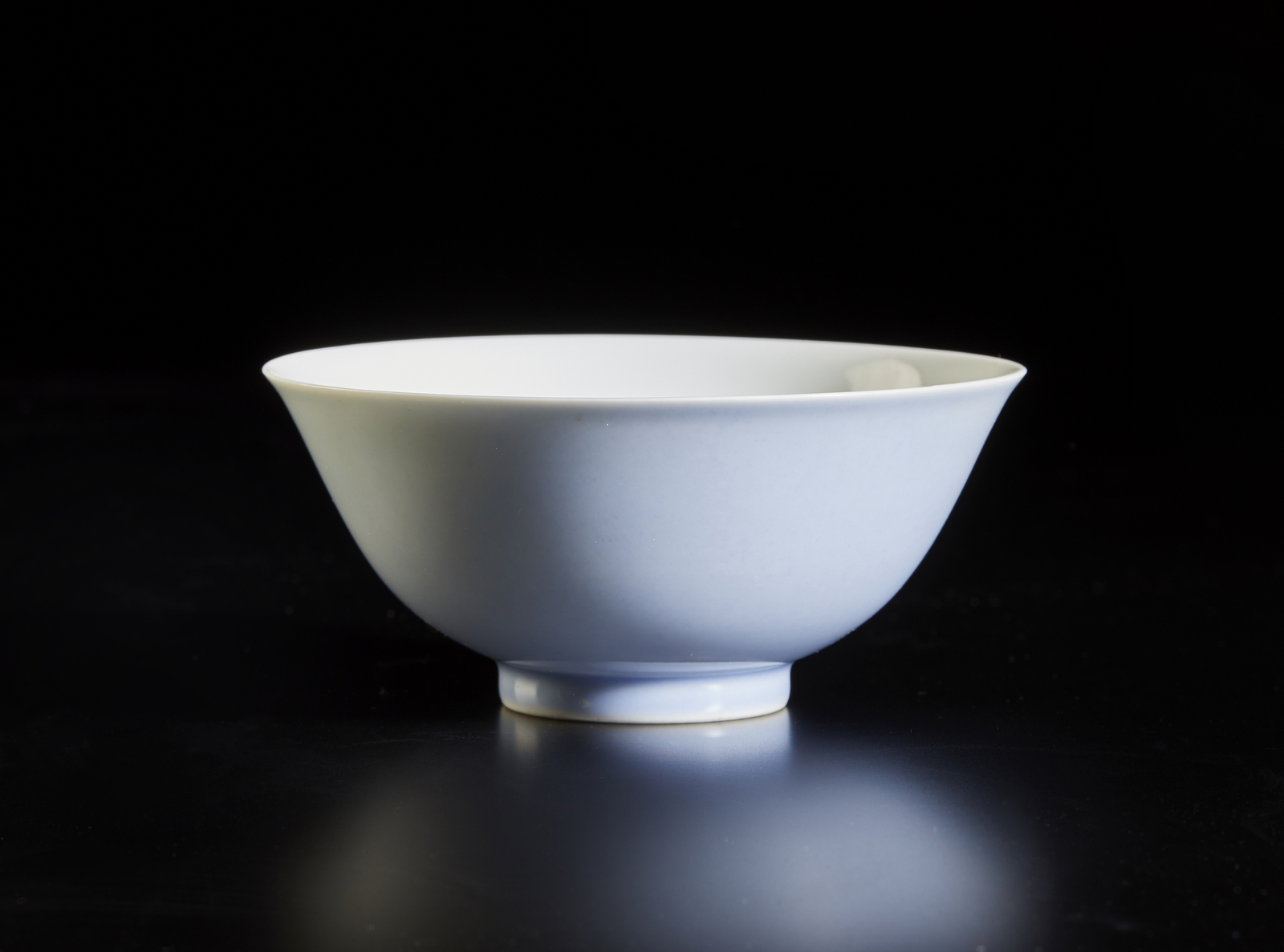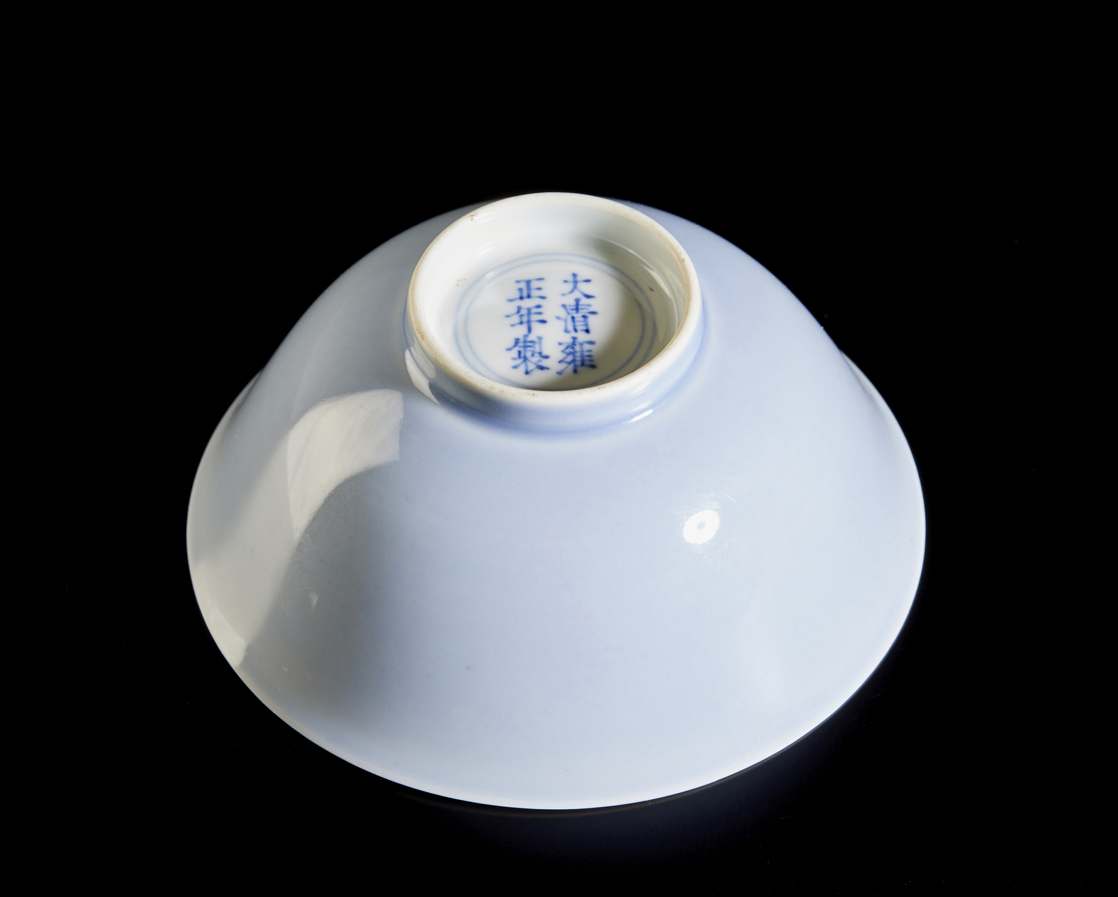 Cina, dinastia Qing, XIX secolo. . Cm 11,00 x 5,00. tazza monocroma in porcellana bianca esternamente rivestita da elegante invetriatura lilla. Sul fondo presenta marchio Yongzheng a sei caratteri.