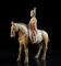Cina, dinastia Tang, IX secolo. . Cm 28,00 x 32,50. Bel modello in terracotta policroma raffigurante una nobile han a cavallo. Le due figure sono state modellate separatamente e poi abbinate.