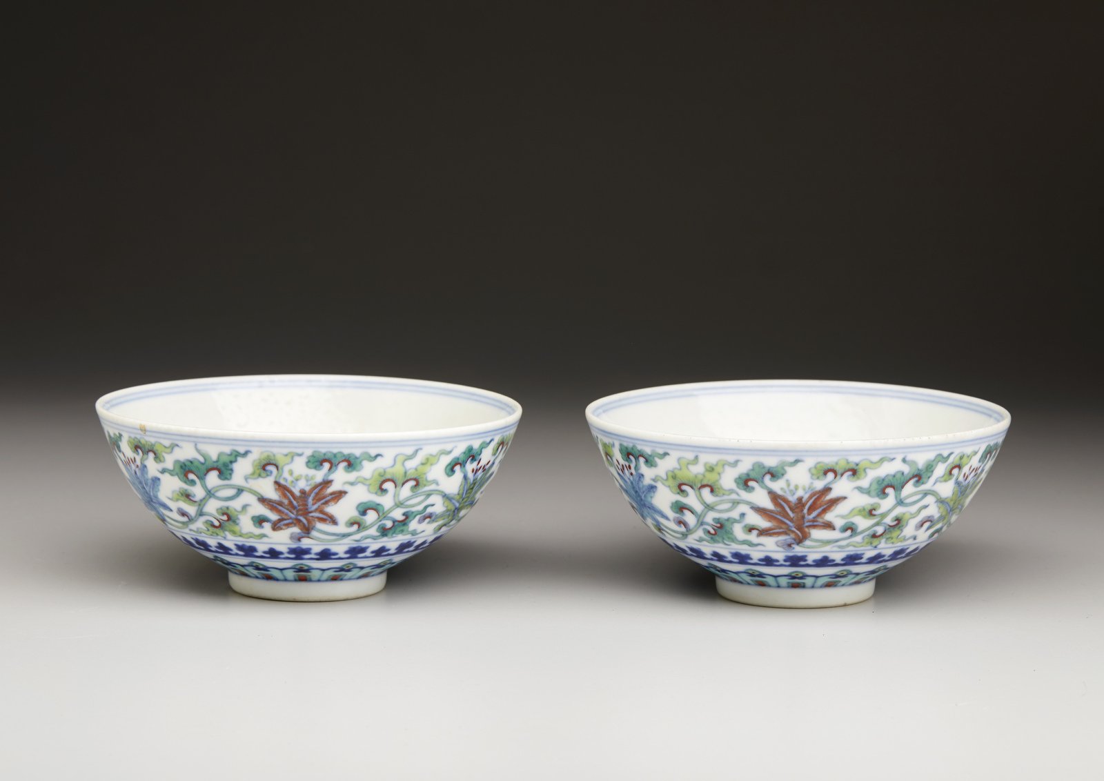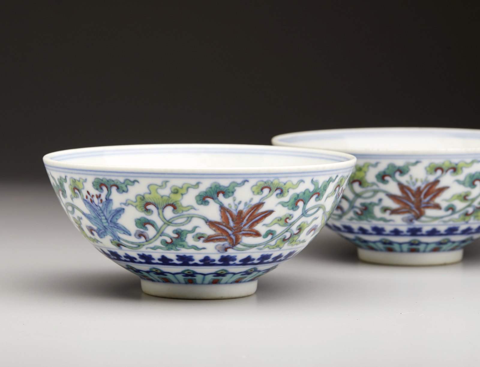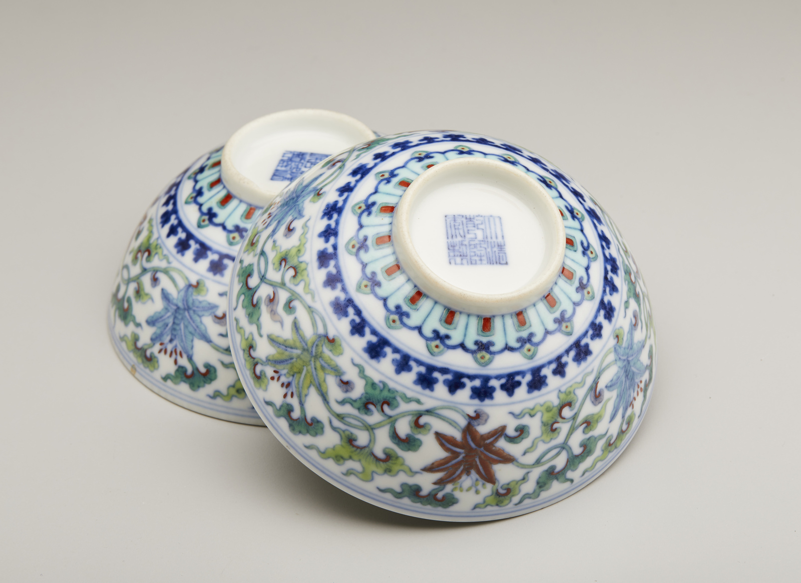 Arte Cinese Coppia di tazze in porcellana doucai