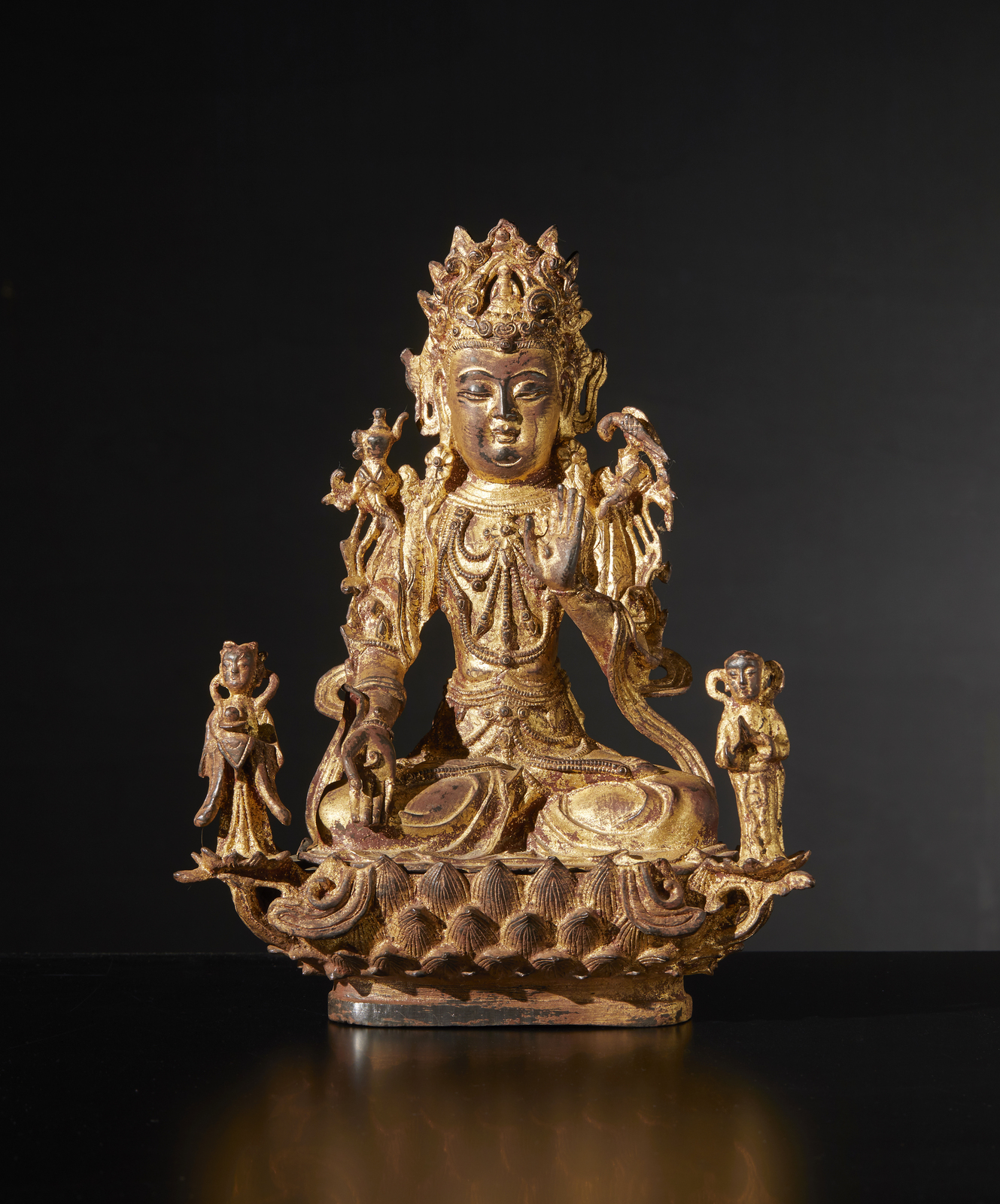 Arte Cinese - Scultura in bronzo dorato raffigurante Avalokitesvara. Cina, dinastia Ming. XVI secolo. .