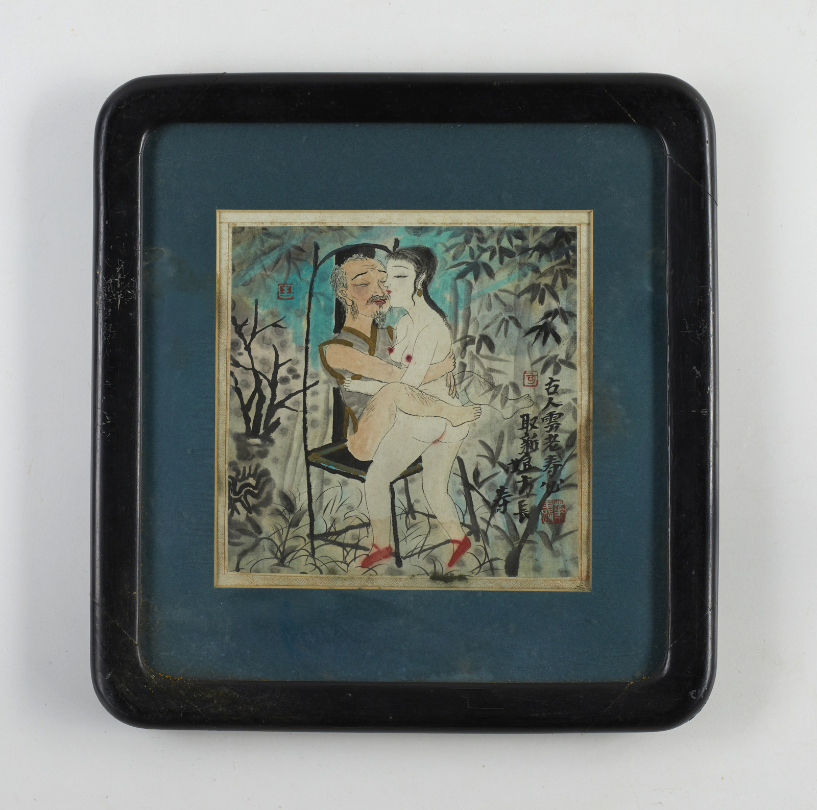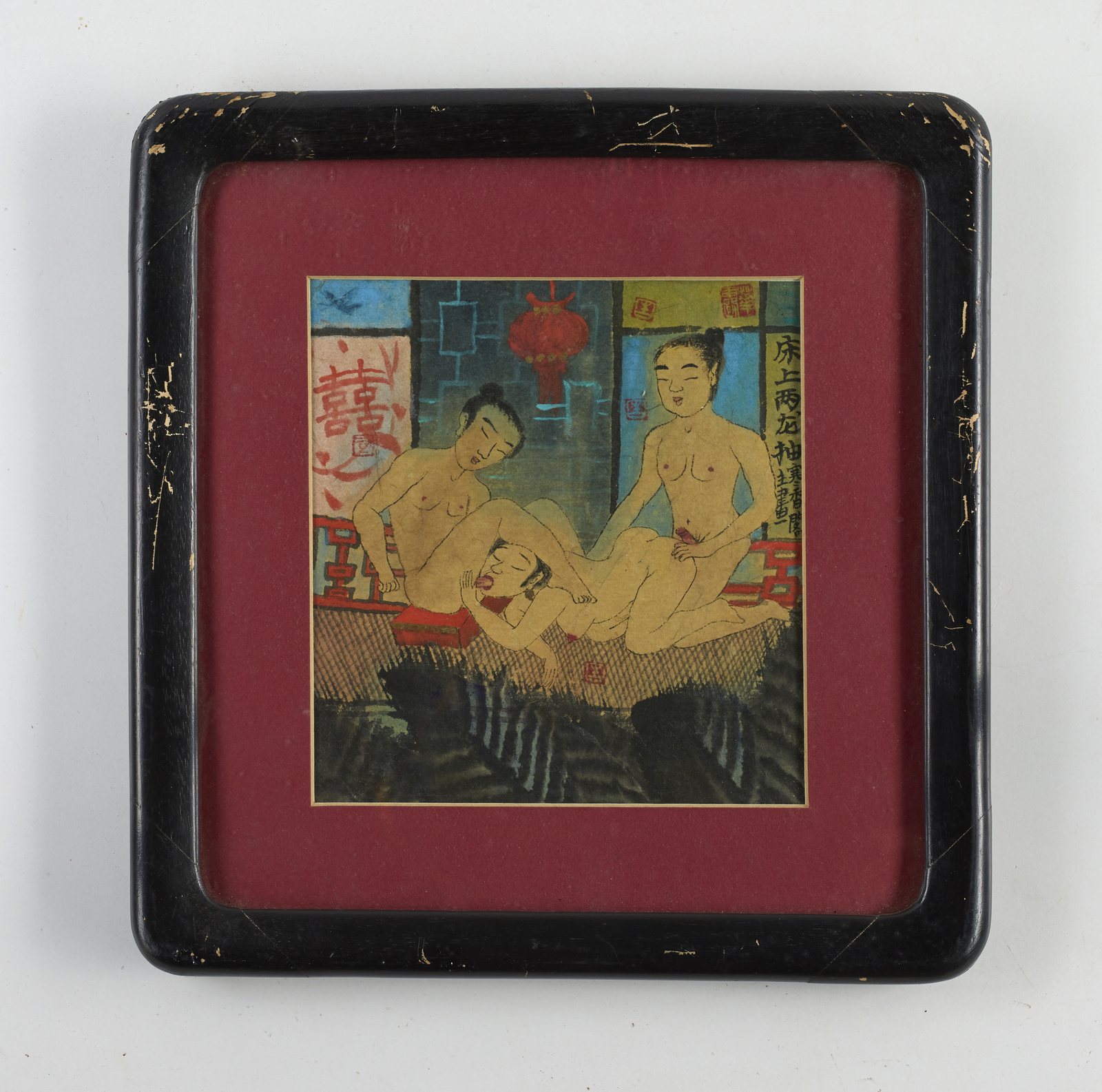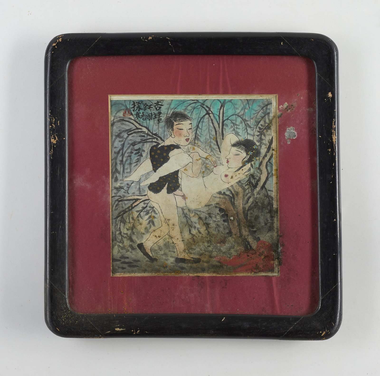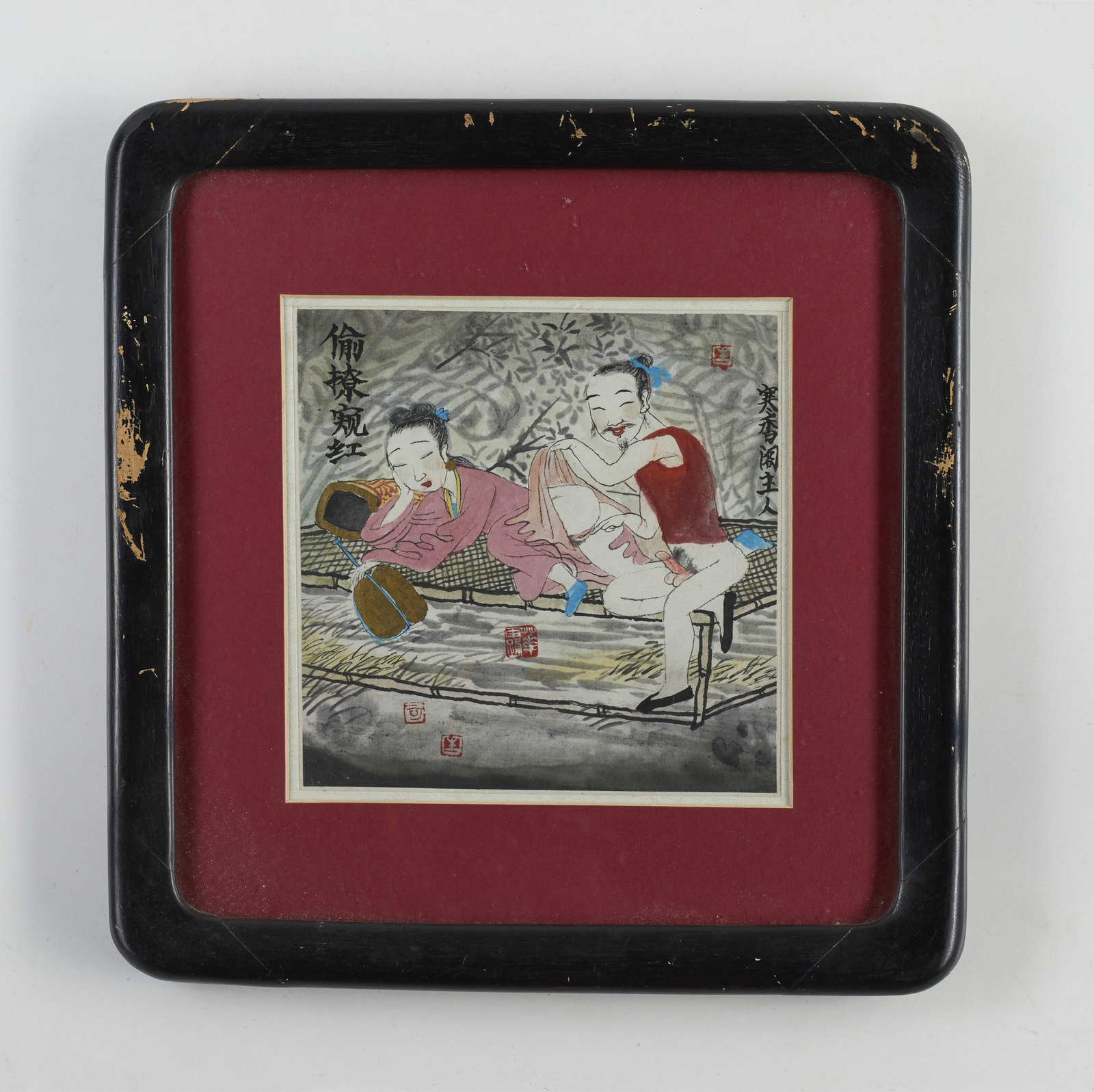 Cina, periodo Repubblica. . Cm 17,00 x 17,00. Serie di otto dipinti a gouache con immagini a carattere erotico. Ogni dipinto, di forma quadrangolare, presenta iscrizione e firma a sigillo dell'artista.
