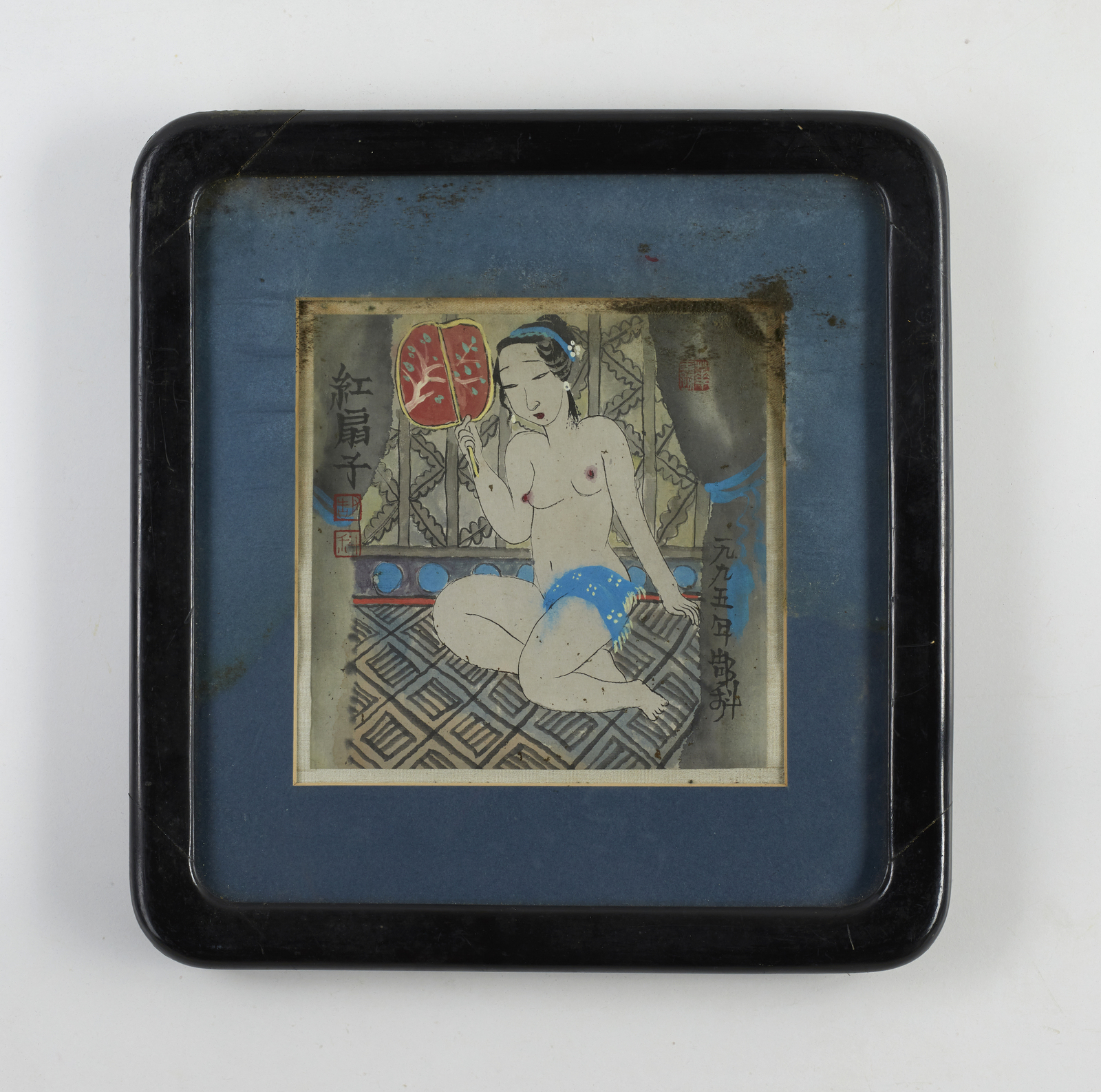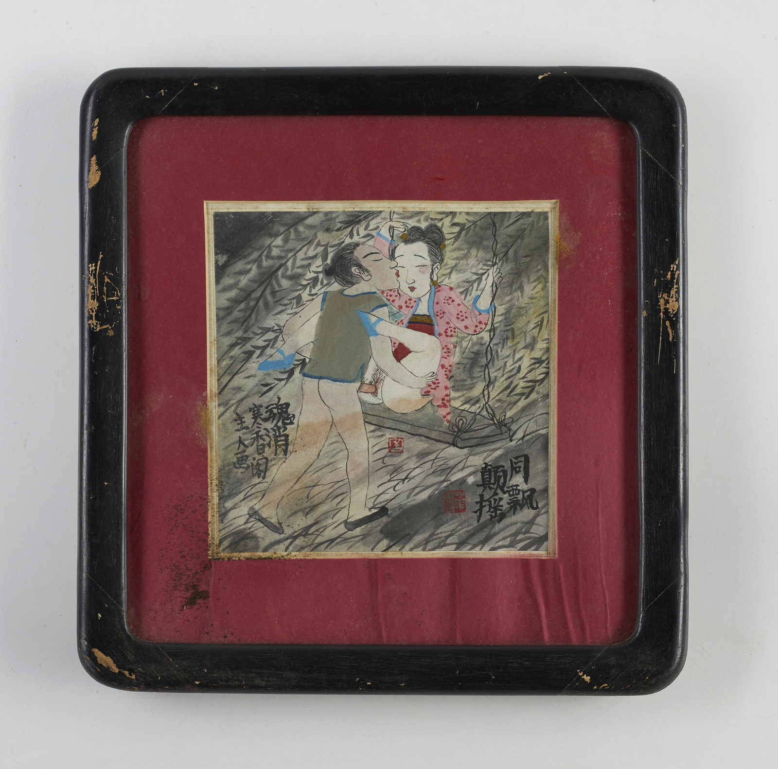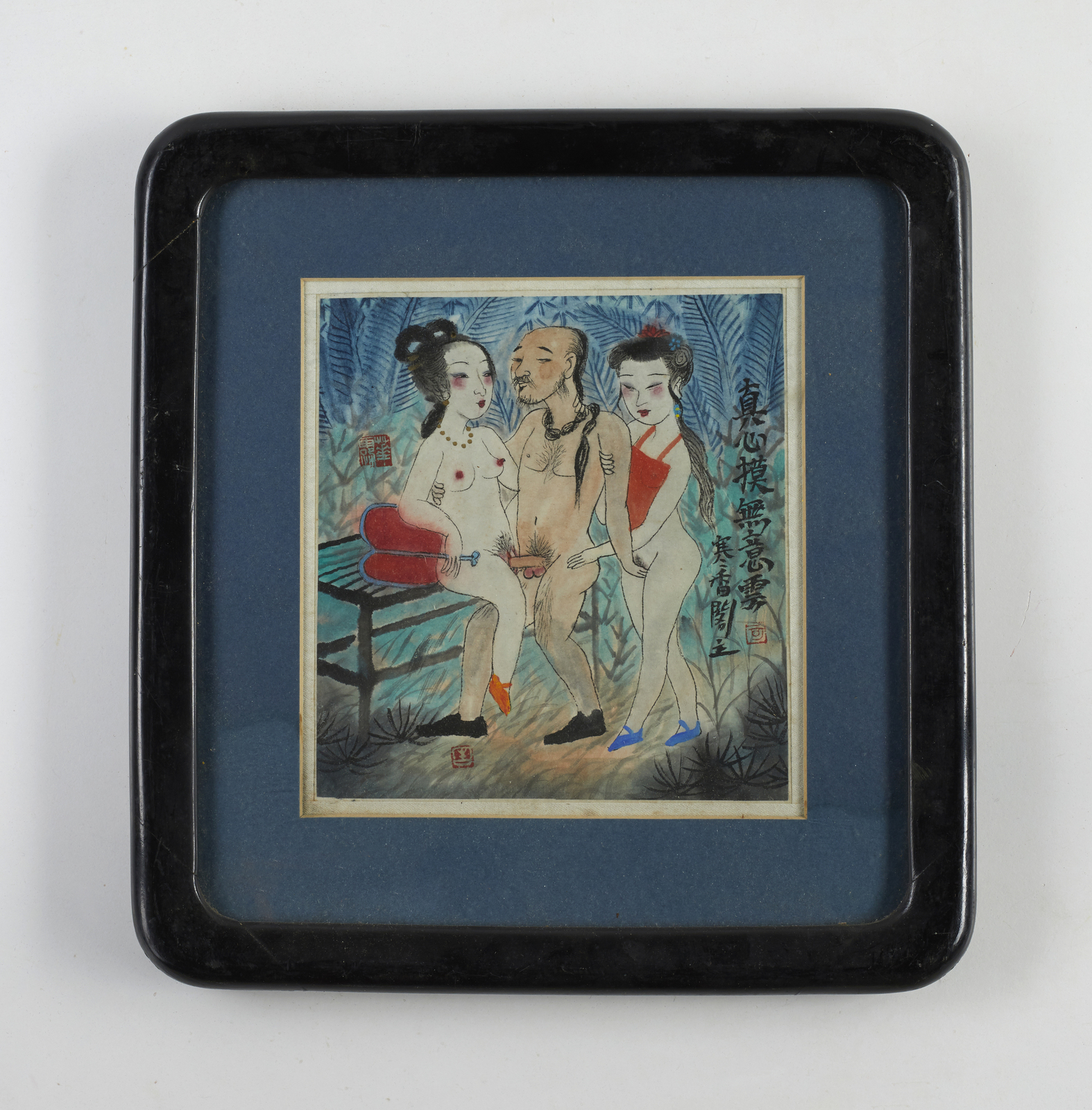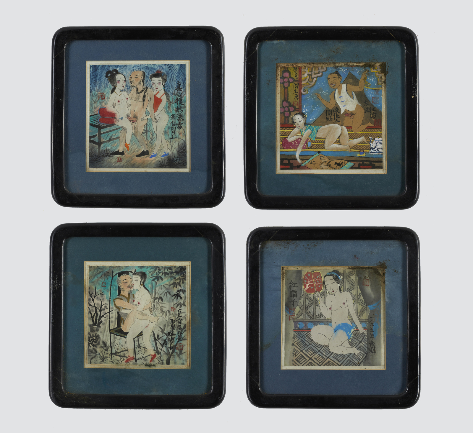 Cina, periodo Repubblica. . Cm 17,00 x 17,00. Serie di otto dipinti a gouache con immagini a carattere erotico. Ogni dipinto, di forma quadrangolare, presenta iscrizione e firma a sigillo dell'artista.